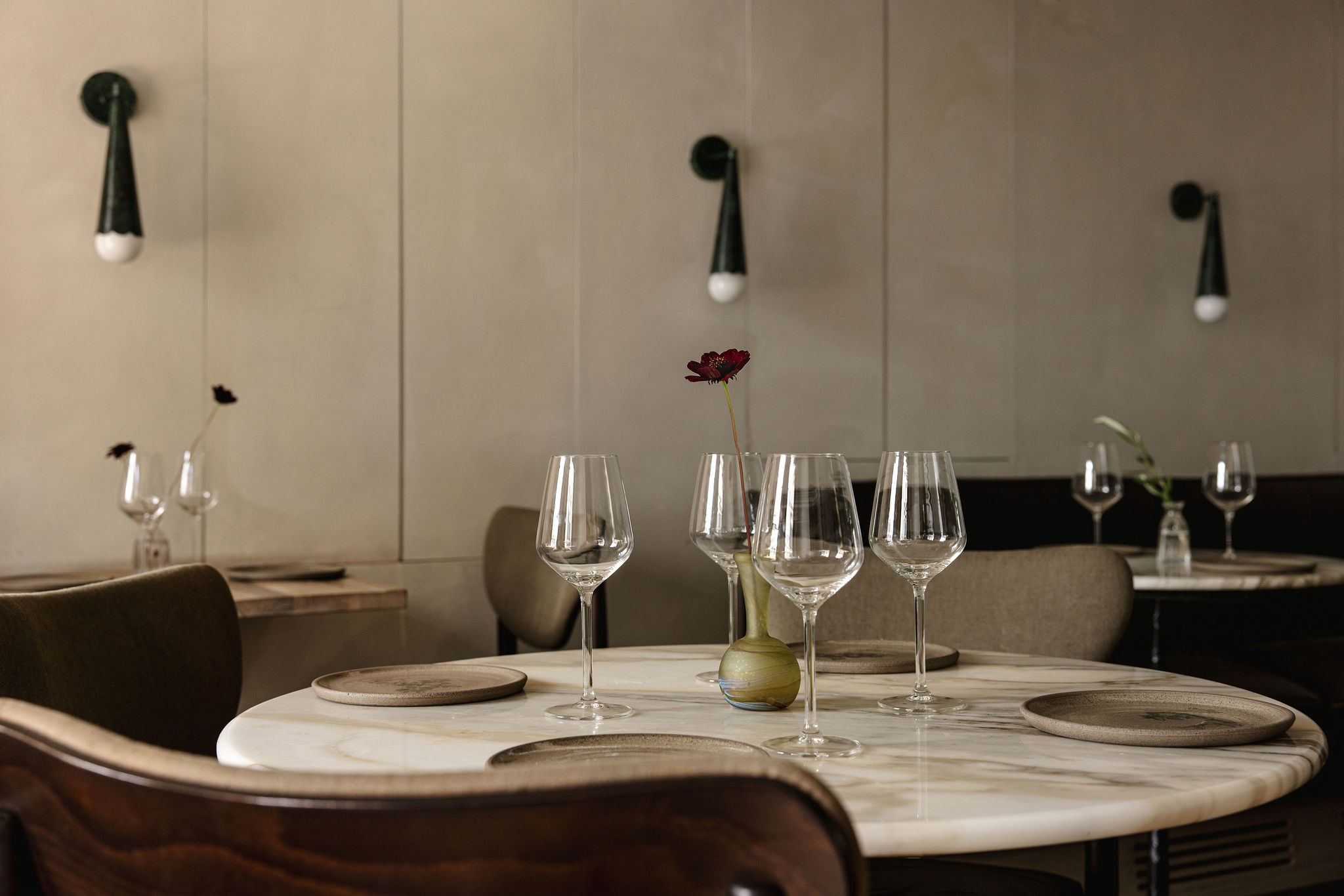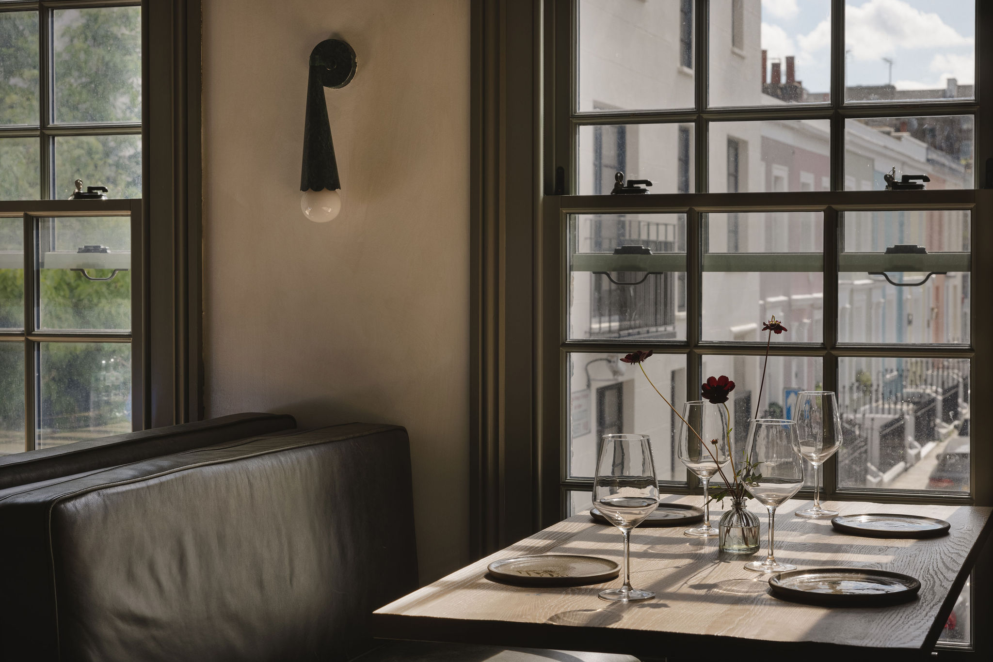 The restaurant is situated in a residential building, making for a unique layout that allows for pockets of differently styled areas similar to a home.