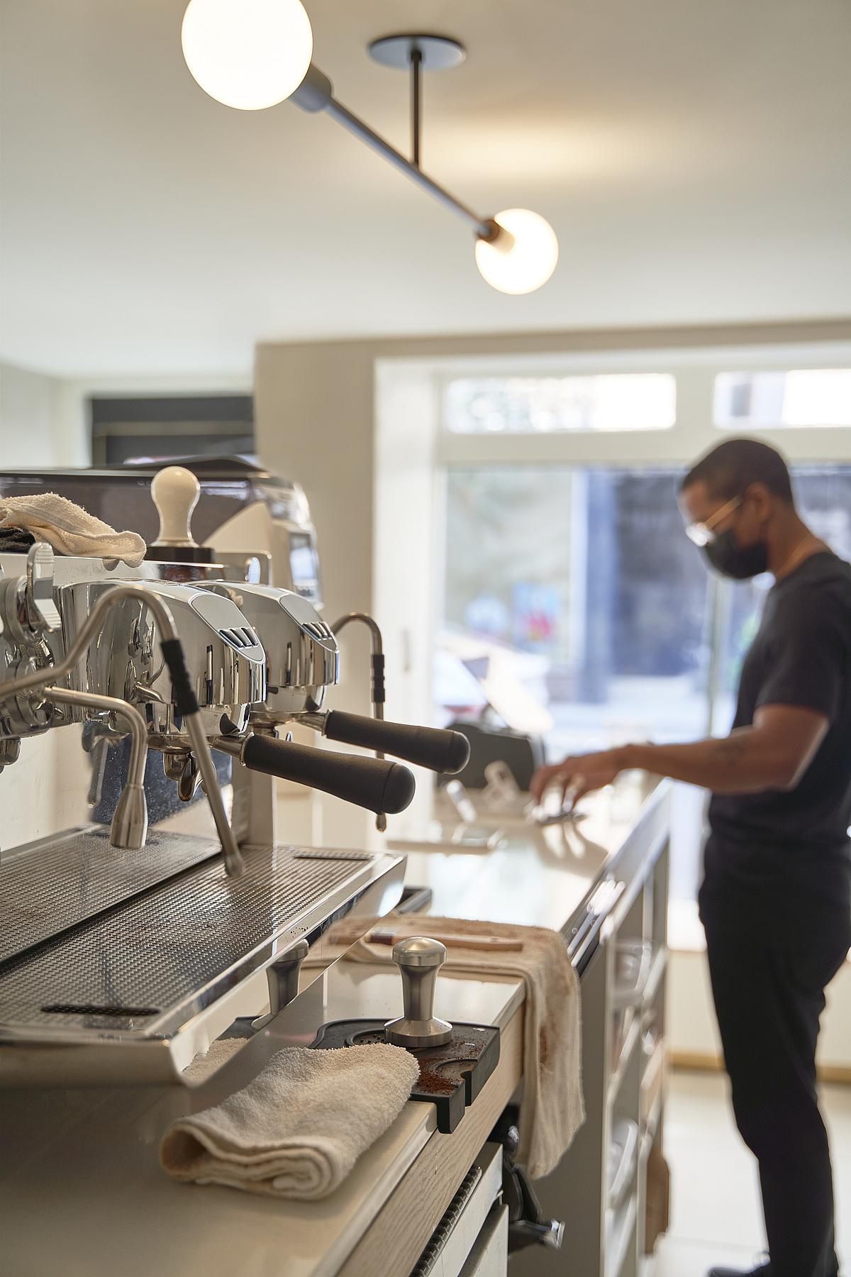 A collaboration with a talented, passionate coffee connoisseur, Chris Stone (who comes from a James Beard Award-winning family) resulted in an interior reflecting the artisanal nature of the shop’s high-quality products and the mixed Japanese and West African heritage of its owner. Inspired by the third-wave coffeeshops of Tokyo – in both philosophy and approach – the attention to detail typically directed towards espresso was focused on creating a shop that rivals some of the best coffee bars in the world.