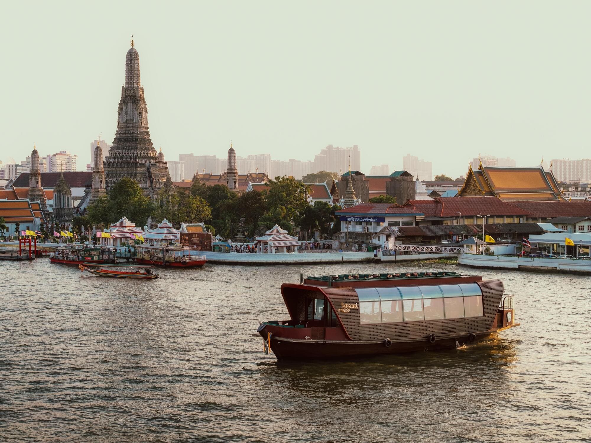 The riverboat now known as Apsara Cruise once journeyed the Chao Phraya River as a rice barge from the ancient Ayutthaya era, before Bangkok became the capital, transporting rice, sugar, and other trade goods between large ships and riverside warehouses.