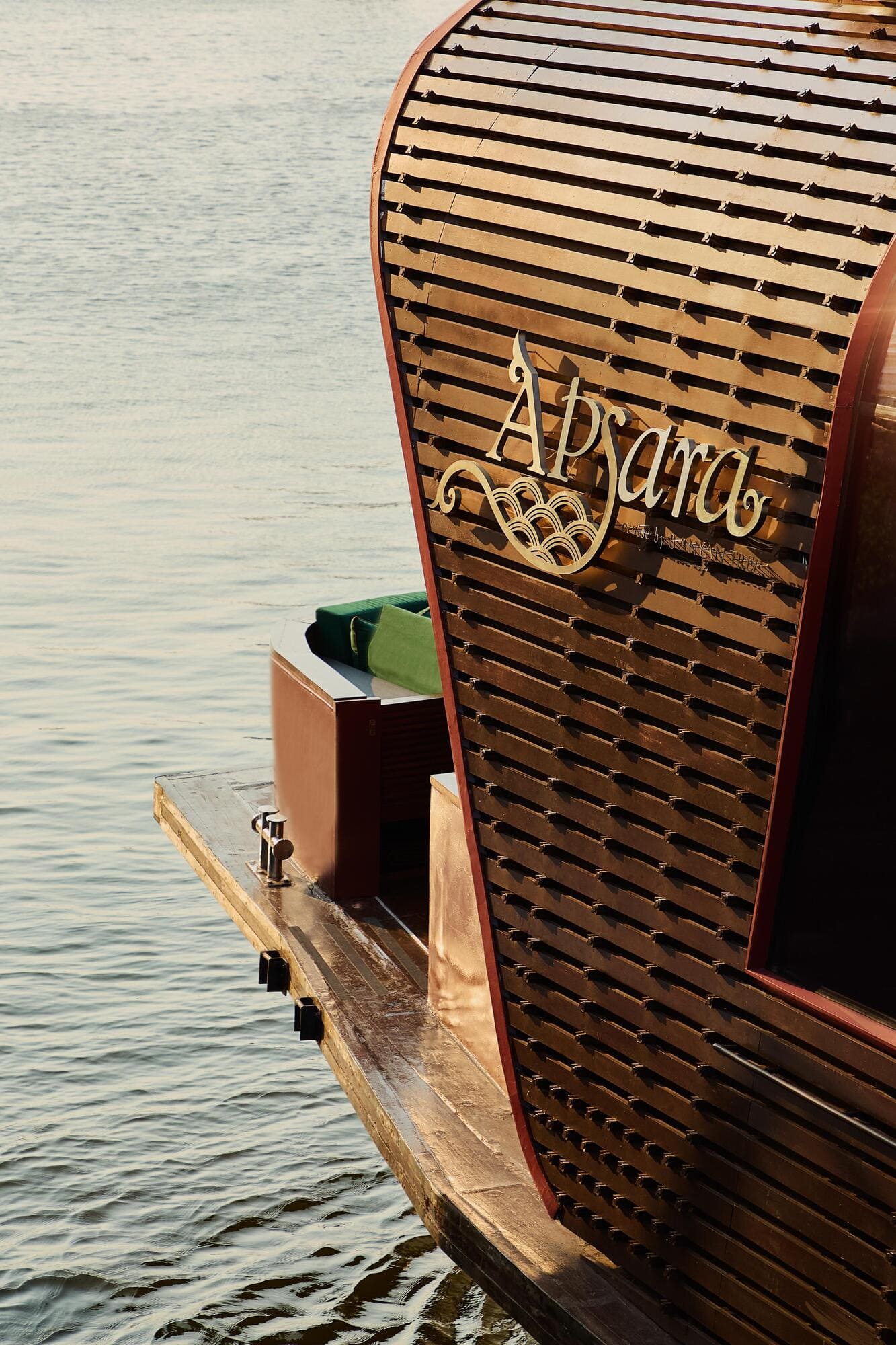 The ambitious remaking by Studio Locomotive preserves its heritage wooden cargo hull—as a below deck for motorization, full commercial kitchen, and guest restrooms—and resonates the shape of vernacular bamboo canopy in a new superstructure, modified for all-season restaurant service. The new configuration comprises three decks, with a total usable area of 245 square meters, including a 90-square-meter indoor dining.