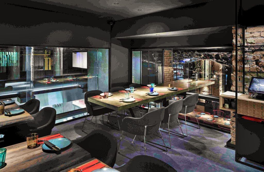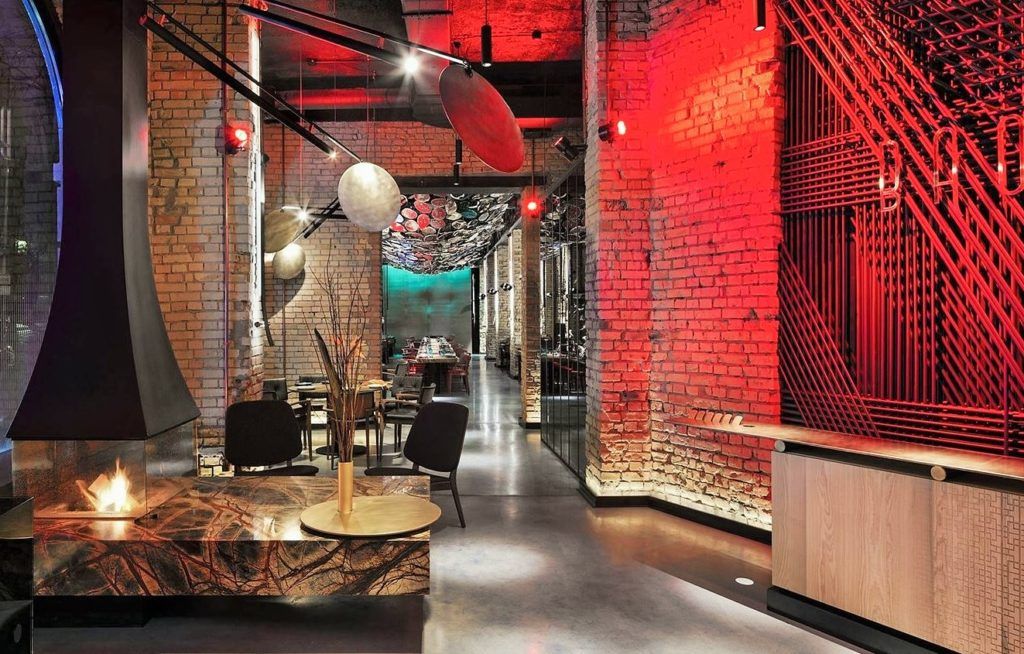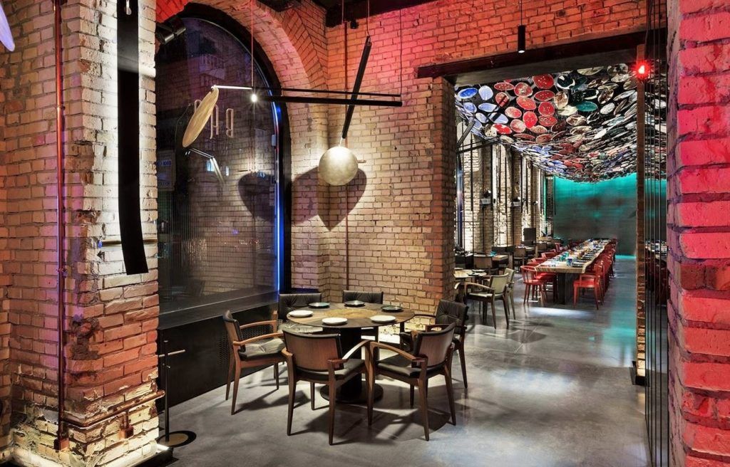 BAO is a modern chinese restaurant that embodies the atmosphere and energy of three megalopolises – Singapore, Hong Kong and New York.Thus, the idea of cosmopolitanism and cultural migration between the East and the West was represented.On the center of the main dining area, there is the longest community table in the Eastern Europe. About 50 guests can easily sit down to this table. The table consists of seven tabletops interconnected by six brass mascots, which come laden with symbols of Eastern philosophy.On the ceiling above the table, one can see the main decorative element of the space – the scale of the Dragon diving into water. The installation consists of the thousand ceramic tiles, each of which symbolizes Koi fish. As Chinese legend has it, any fish that gains the Dragon Gateway up the river turns into dragon. Waterfall at the end of the room embodies such a gateway.Next to the main area there is a little one with fireplace and cozy tables for those who want to retire.The room on the second floor is decorated with the bright installation named Chinese warrior armor. It overlooks the main room as well as an open kitchen. An additional attention grabber of this room is the brass table crossing the line of the glass barrier and balancing over the main dining area. In such a manner the idea of the Yin and Yang balance is represented.Surely, one of the main points of interest is a kitchen. It is fully open, placed straight on center and surrounded by glass windows only. Thanks to this approach, guests can oversee the kitchen teamwork, notwithstanding where they sit.