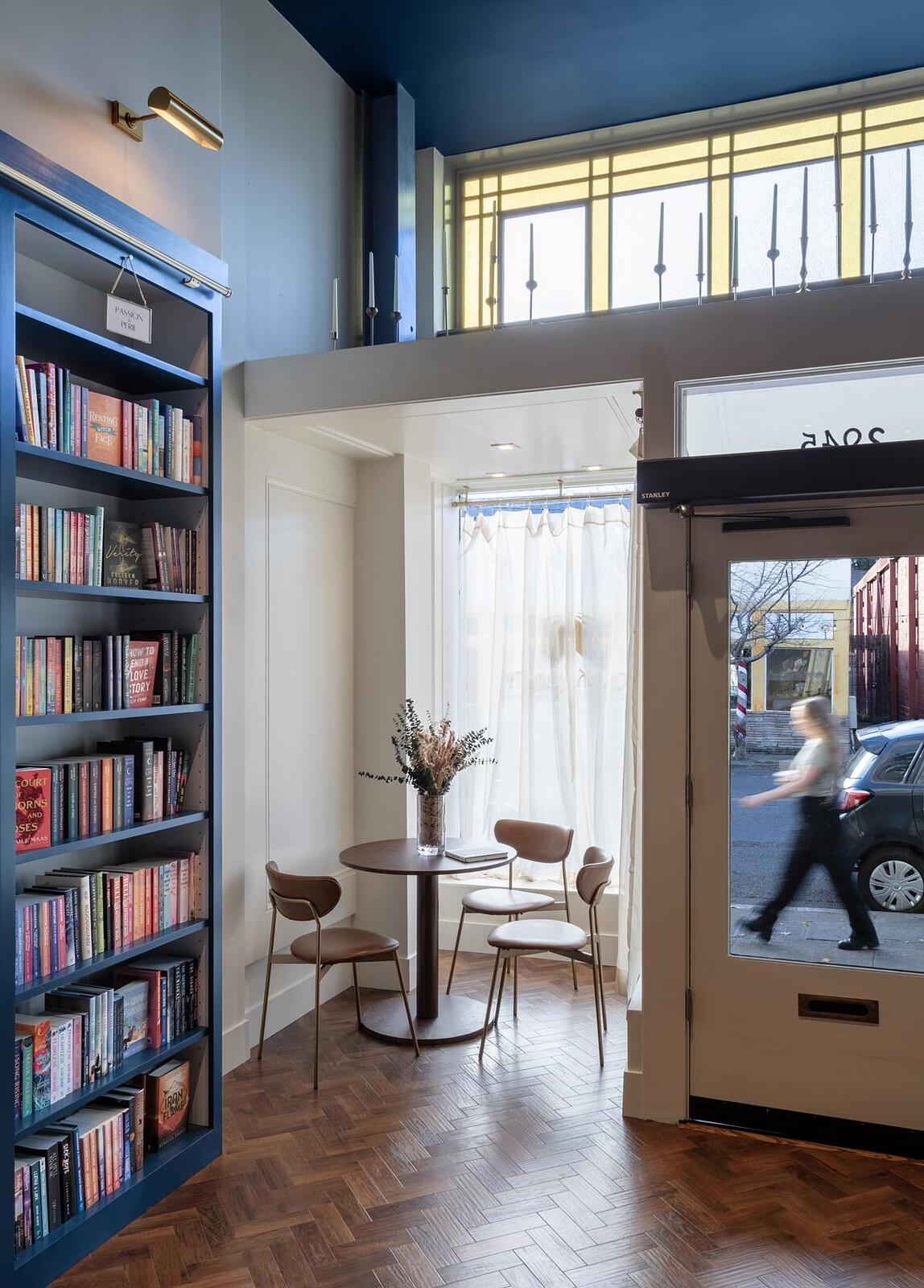The design of Book Society was carefully crafted to balance its dual roles as both a bookstore and a social hub. As a hybrid space combining a bookstore, a wine shop, and a communal gathering place, it was essential to create an environment that was adaptable. Fixed bookshelves along the perimeter provide structure and a sense of permanence, while the central area remains fluid, allowing for different configurations depending on the needs of the moment. Inspired by the dynamic nature of a pop-up book, elements of the space can be moved or reimagined, ensuring that each visit feels fresh and unique.