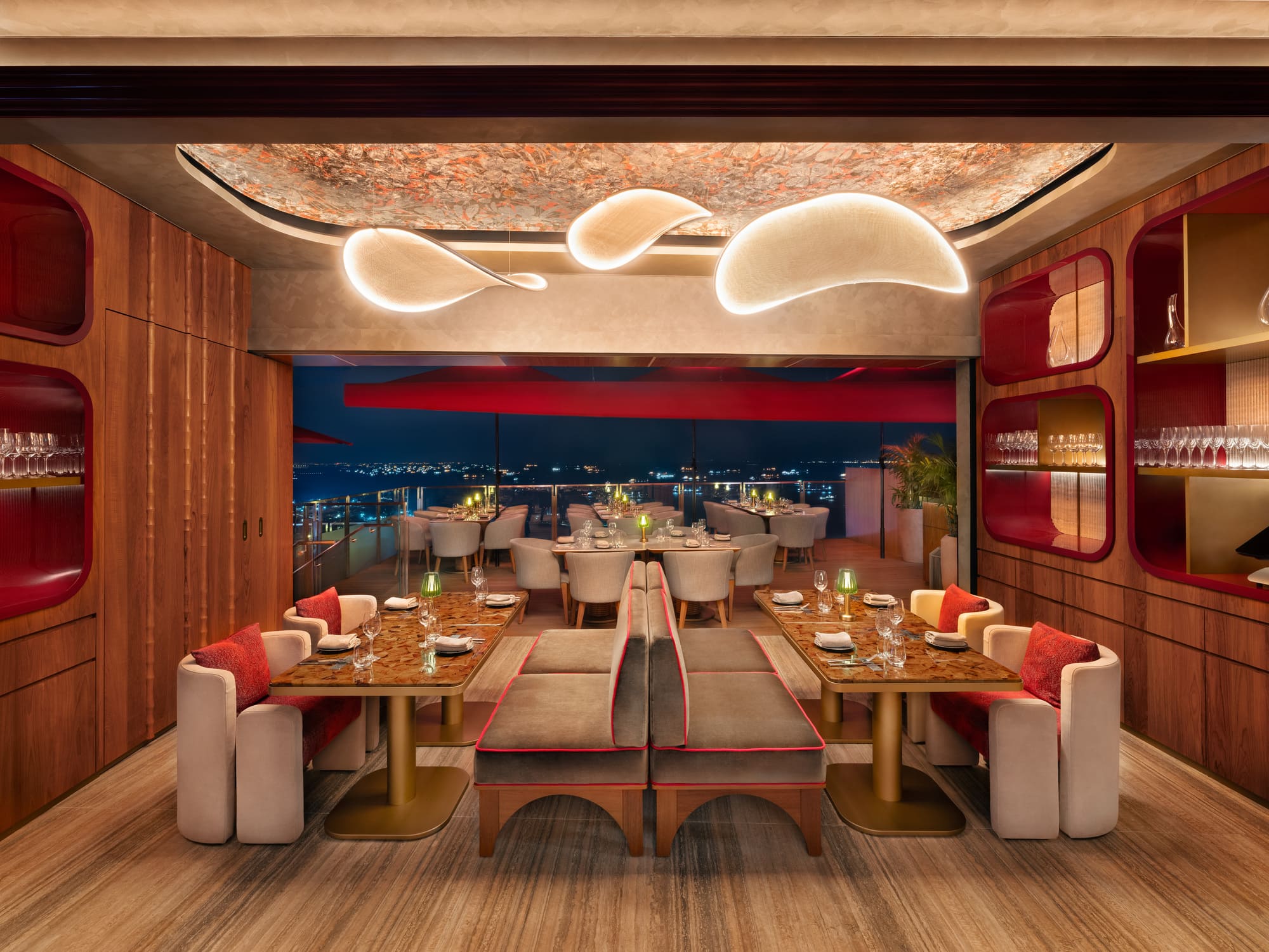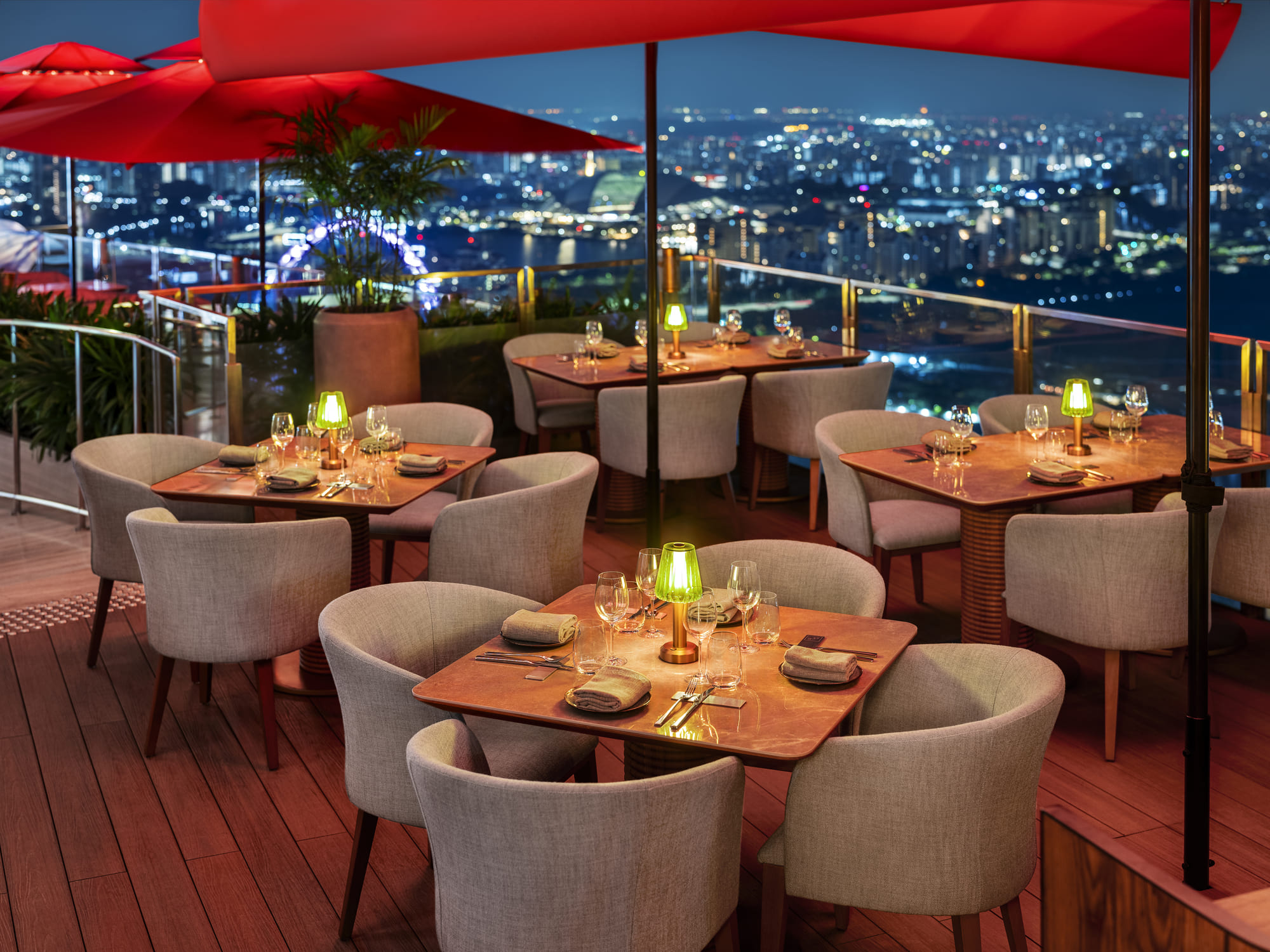 Located on the rooftop of Marina Bay Sands Hotel, the Restaurant now welcomes guests to flow through distinct zones: a show-stopping main dining space crowned by a striking bar, an expanded Private Dining Room, and open-air rooftop terrace with Ocean View options. Together, the reimagined space now seats 151 guests.