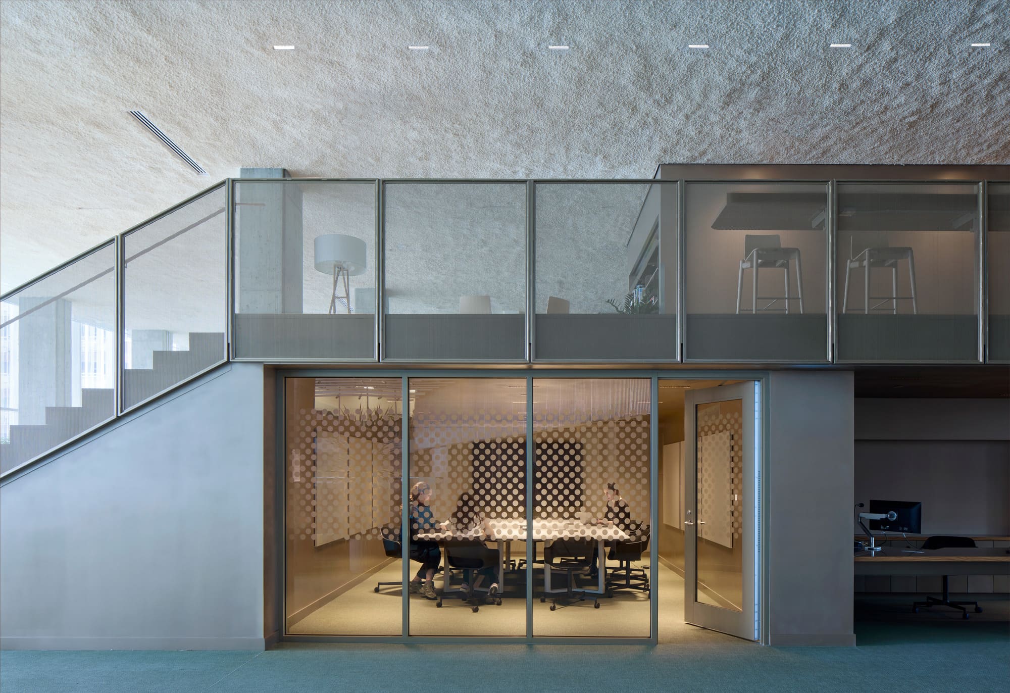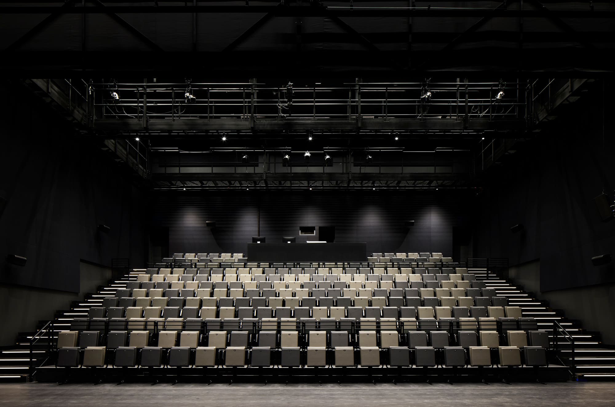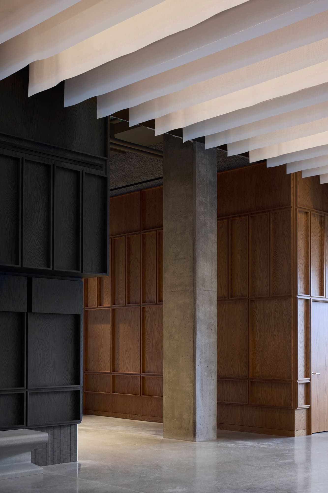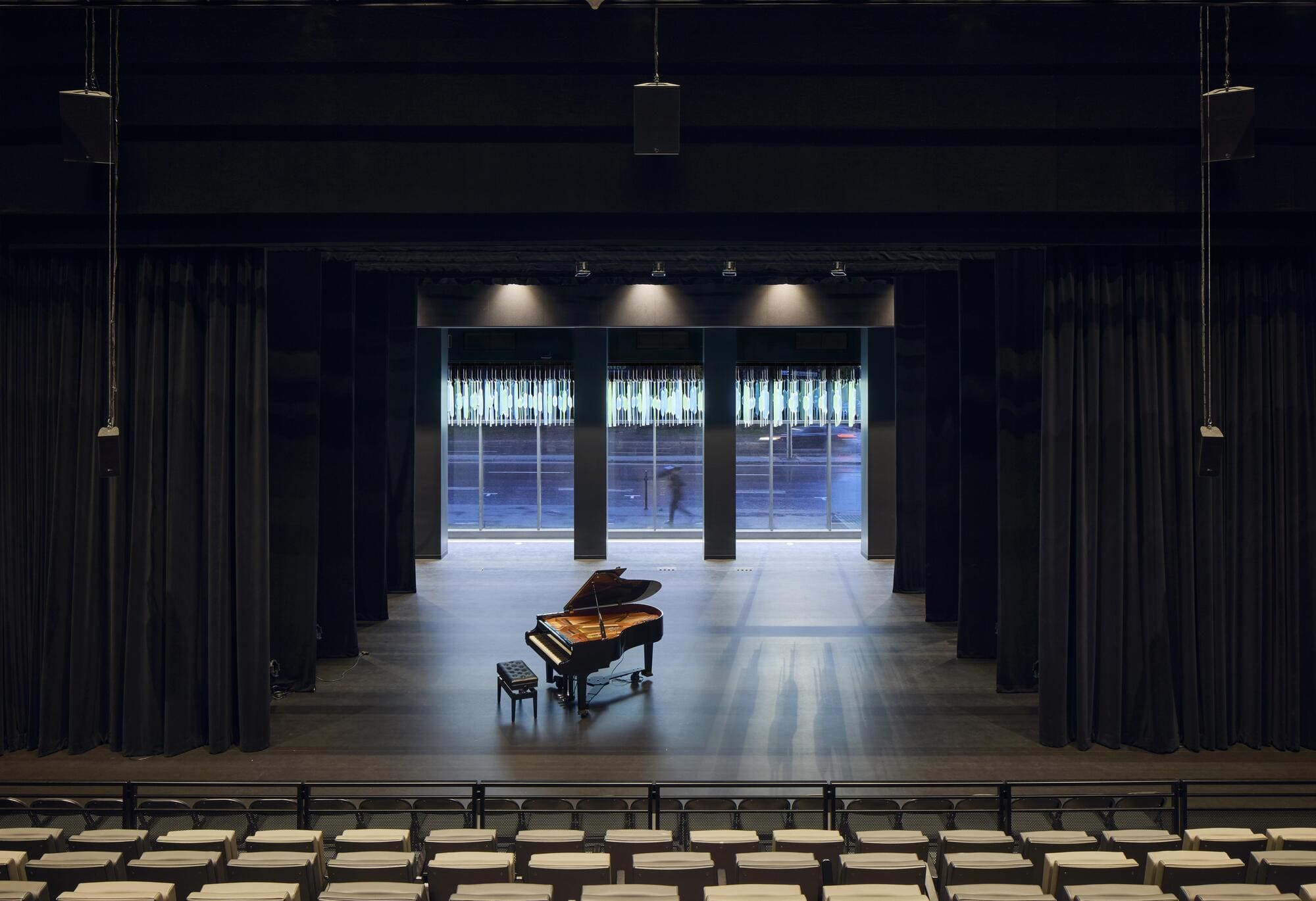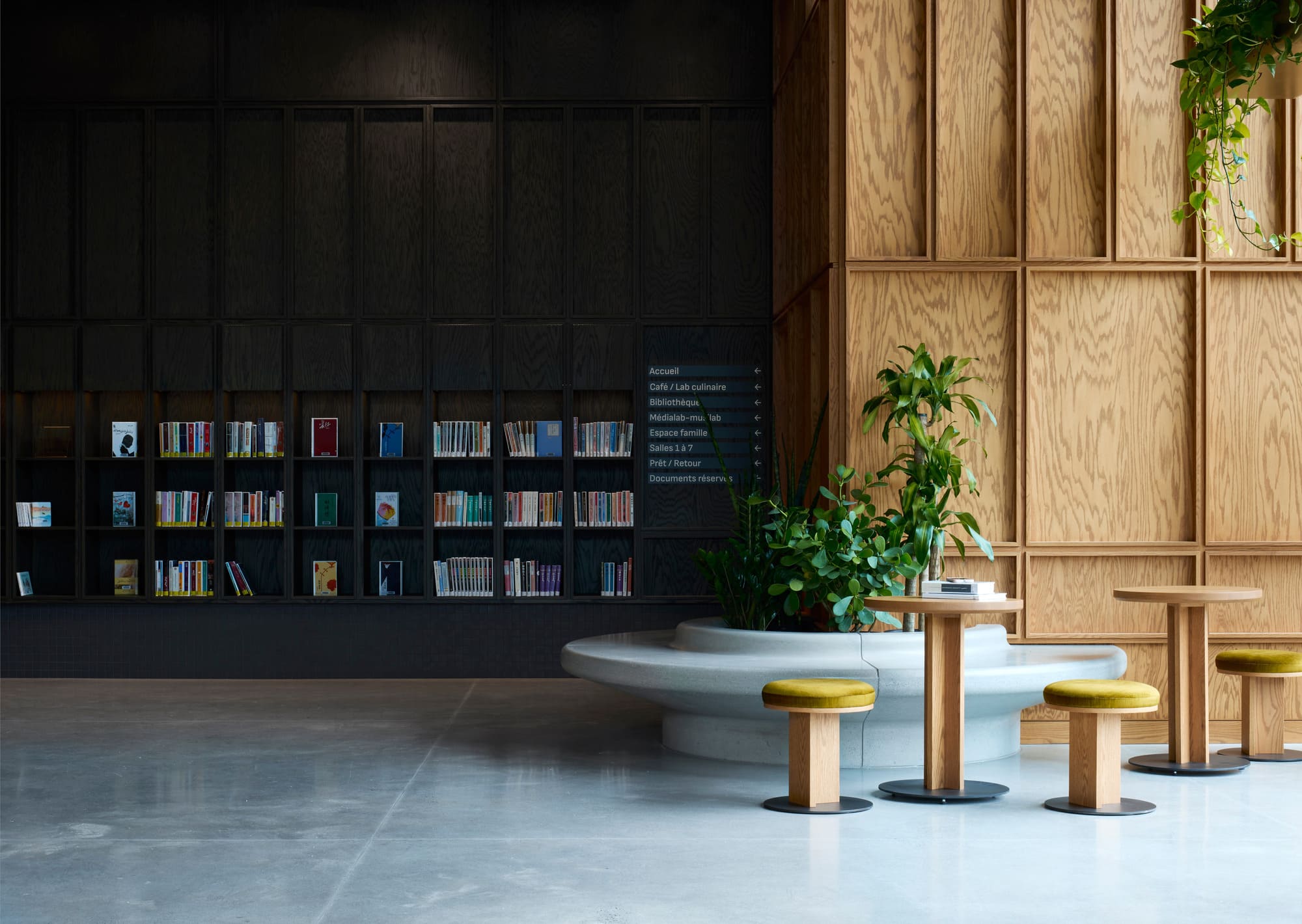 Acoustics, a central design concern, are controlled and refined through the use of various materials such as coffered wood ceilings and walls, suspended fabrics, and exposed sprayed cellulose. These treatments ensure exceptional performance within large, open volumes, creating a comfortably resonant environment that accommodates everything from vibrant performances to moments of quiet reflection. Vegetation, subtly integrated into the architecture, softens the atmosphere and reinforces a sense of well-being.