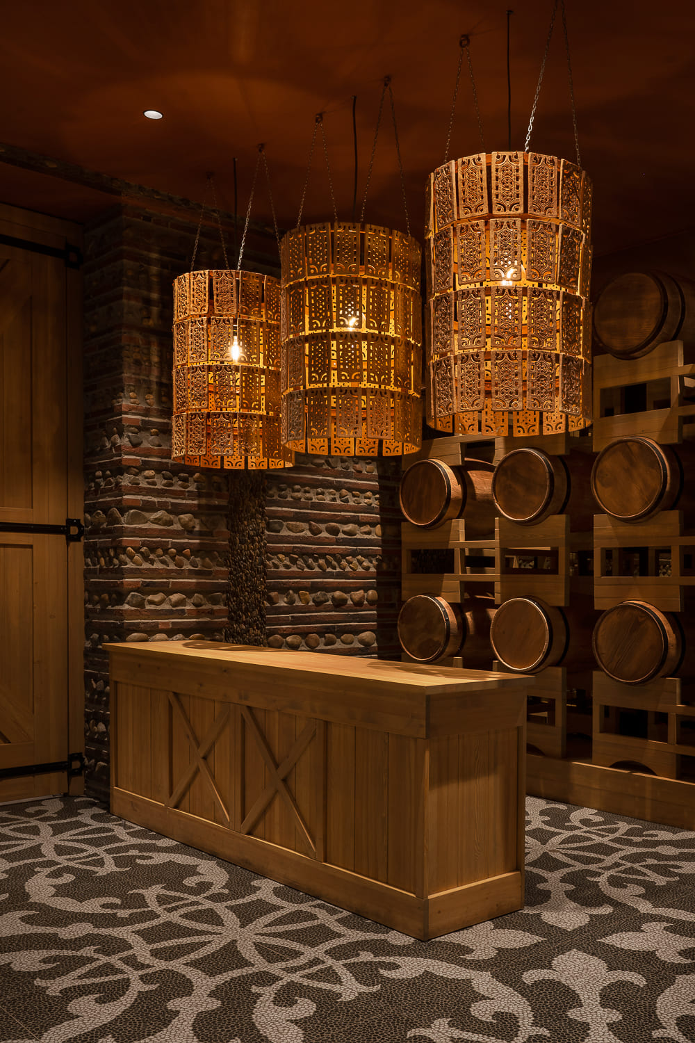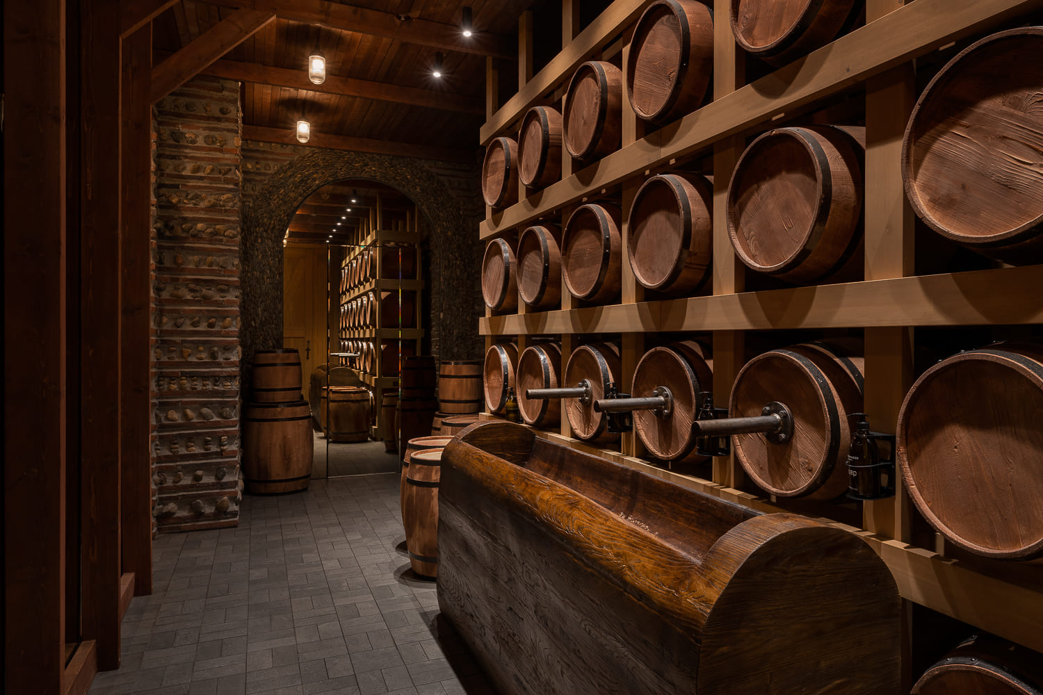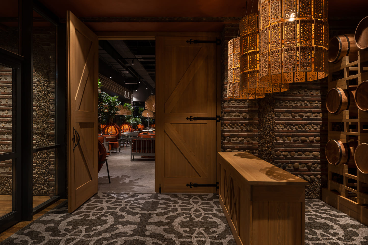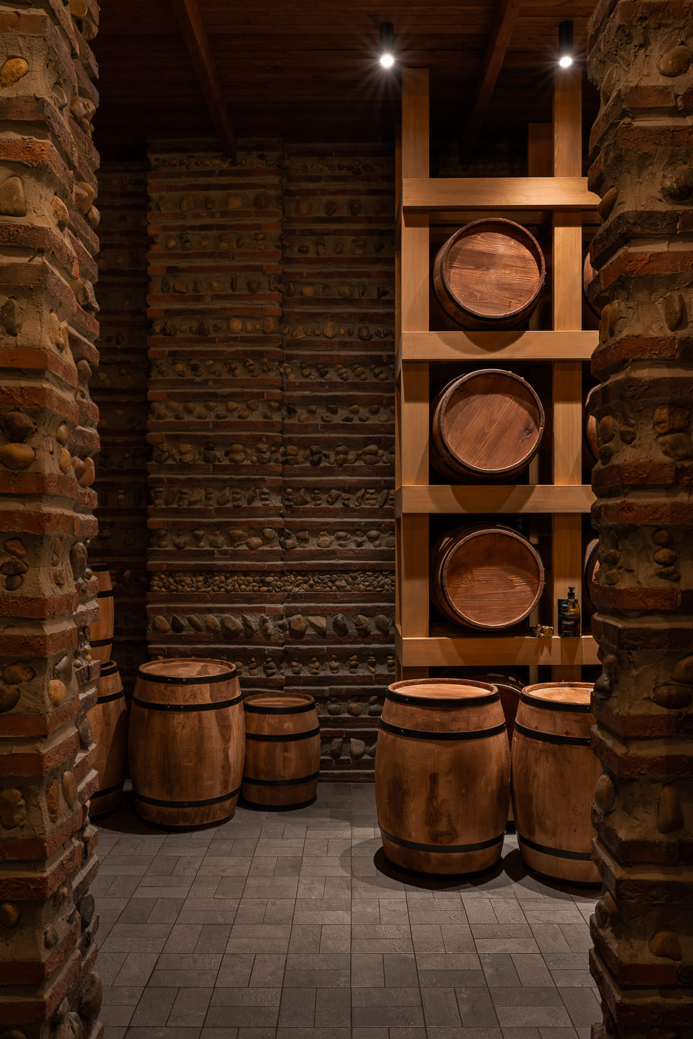 The interior, being part of the concept, is built around wine – one of the symbols of Georgia, without which no Georgian holiday is possible. Inspired by Georgia and the Kakheti region with its wineries in particular, we created the atmosphere of a Georgian chateau.