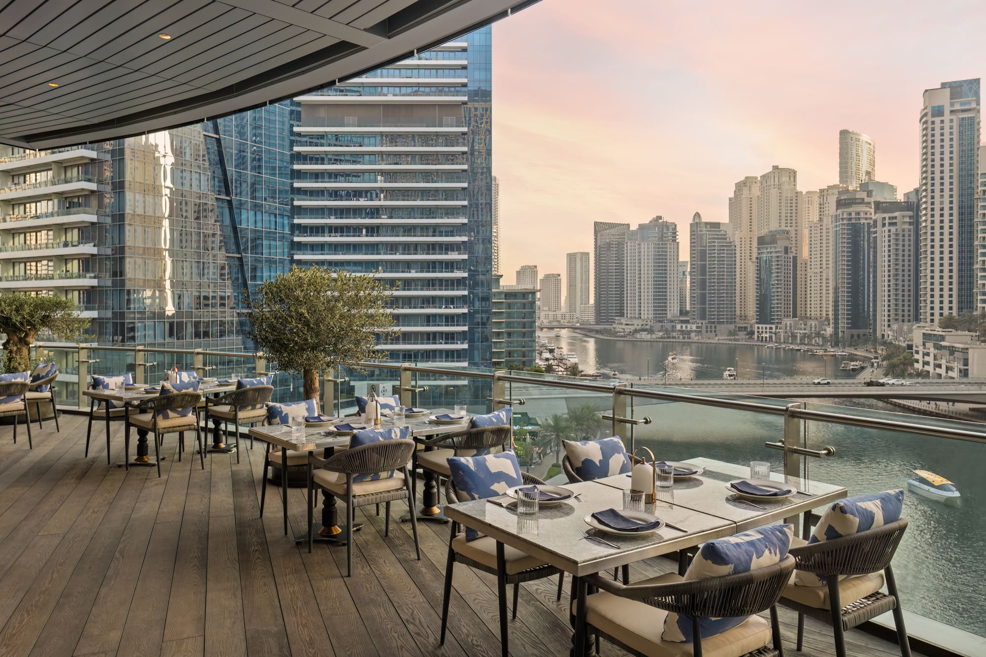 A slice of the Mediterranean has landed in Dubai’s famed Pier 7, taking over Level 4 with a sense of Greek flair and stunning Marina views.