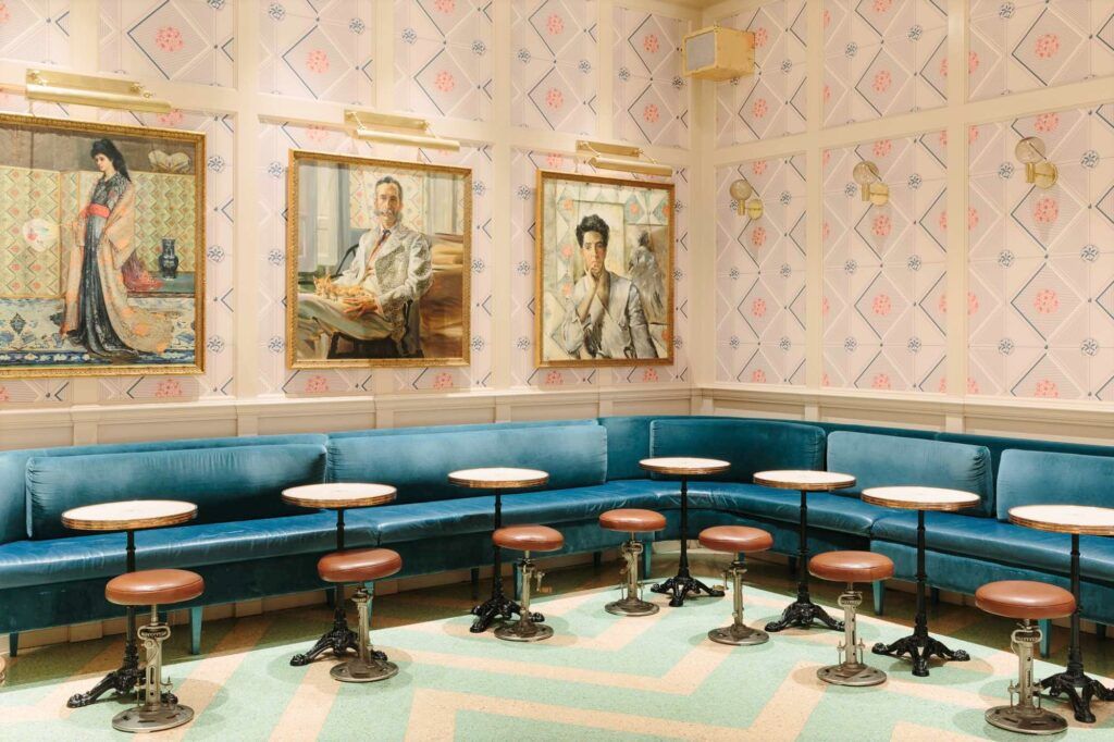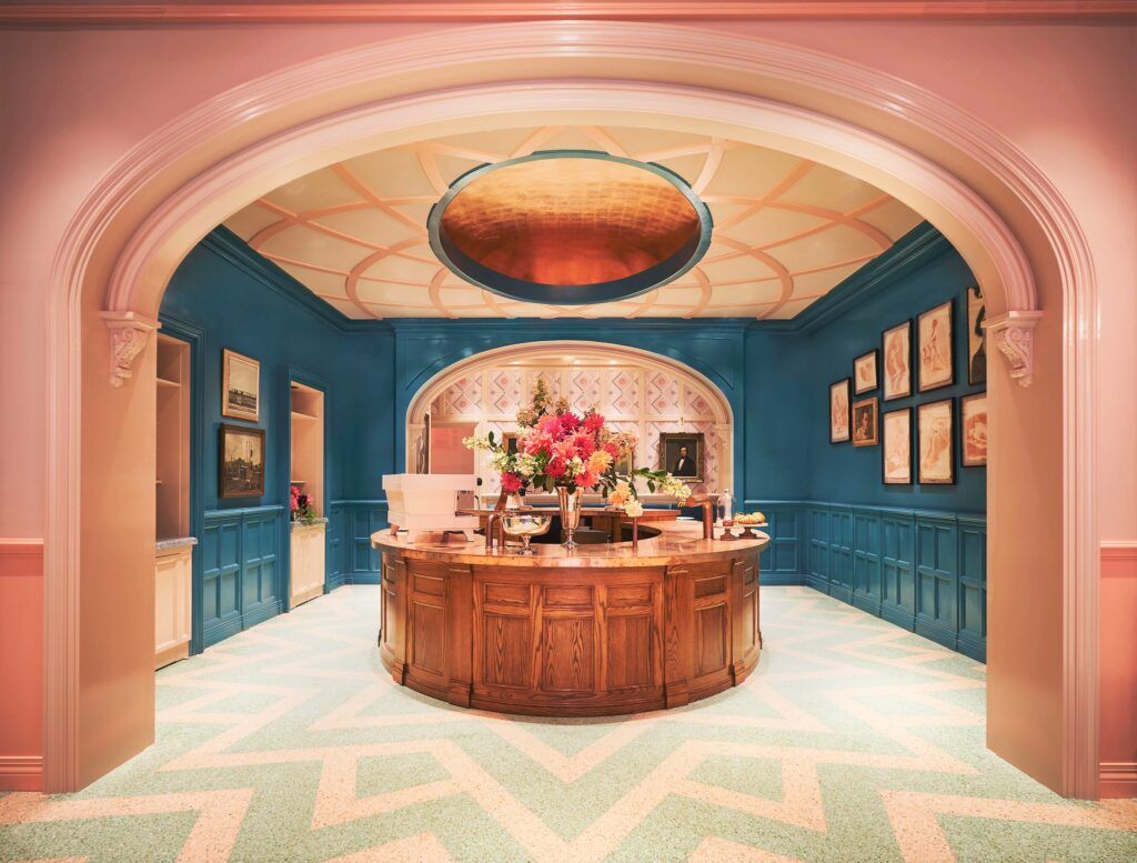 By creating a glorious space and producing the best coffee with the utmost care, what has become an important part of many people’s lives has been elevated and honored as a shared experience. The antithesis to the industrial style of coffee culture. Instead of live wood, concrete and steel, a luxurious, elegant and highly aesthetic café was imagined which, through its design, would elevate the daily coffee ritual.Reference has been made to classical architecture and sacred geometry used in cathedrals as a way to define space and create a central focal point. There is also a clear reference to the old European coffee culture in Vienna and Milan, as well as the secessionist movement to inspire the brand identity and custom motifs for wallpapers and wall coverings.