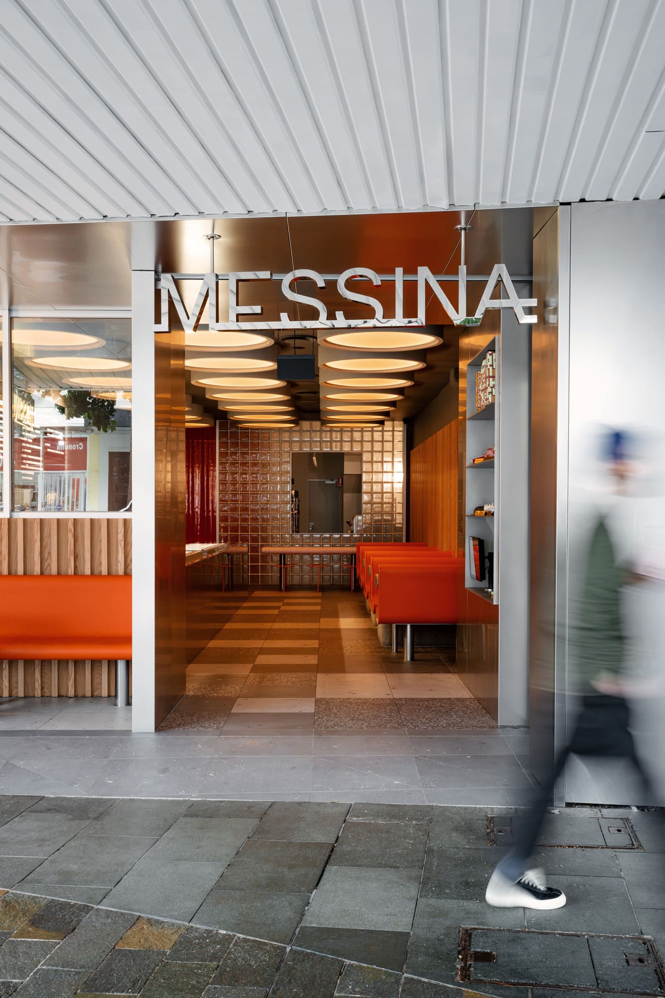 Inspired by sci-fi set design, Gelato Messina Cronulla draws from romantic visions of the future. A grid of oversized, underlit circular lights hovers over a space that is many things at once: gritty, reflective, warm, and bold.