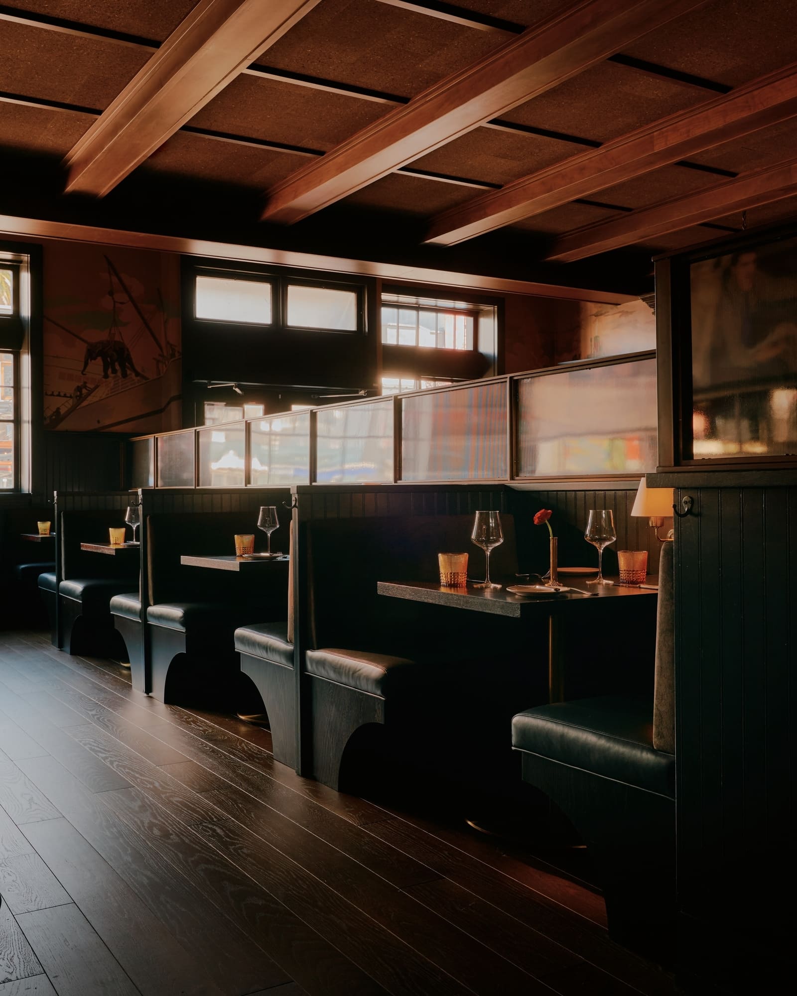 While renovating throughout, the main dining room on the first floor remains intact, its original booths given new life through thoughtful refurbishment.