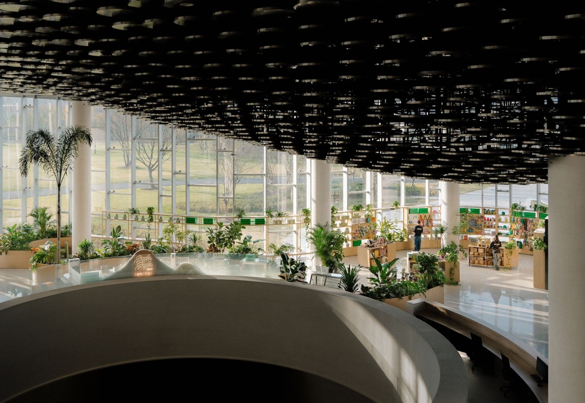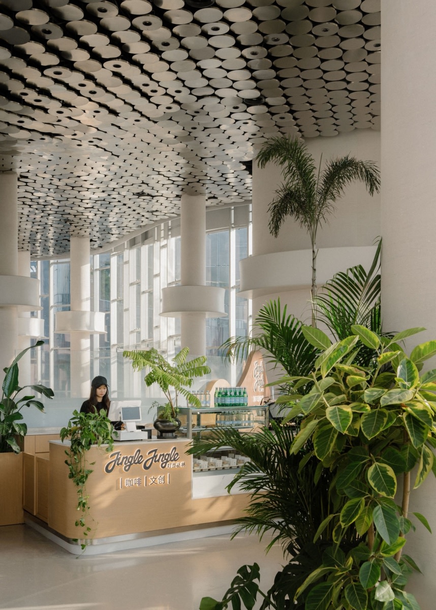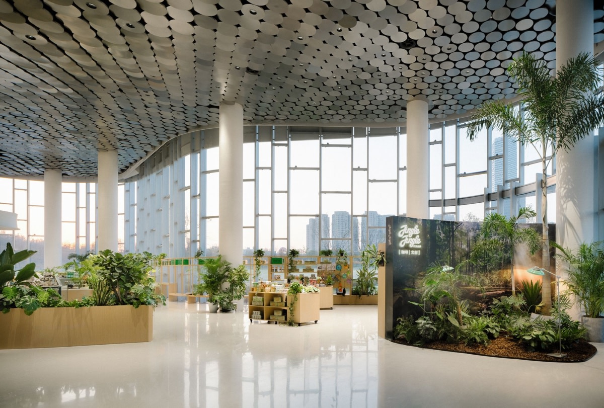 Jingle Jungle Creative Coffee, located in the greenhouse garden of the Shanghai World Expo Cultural Park, is another great example of TSPACE’s “curated commercial”approach. The designers used a curatorial design approach to create an immersive space that brings nature and art together, differentiating the brand in Shanghai’s highly competitive coffee market. The design of the space changes how people think about and experience coffee culture.