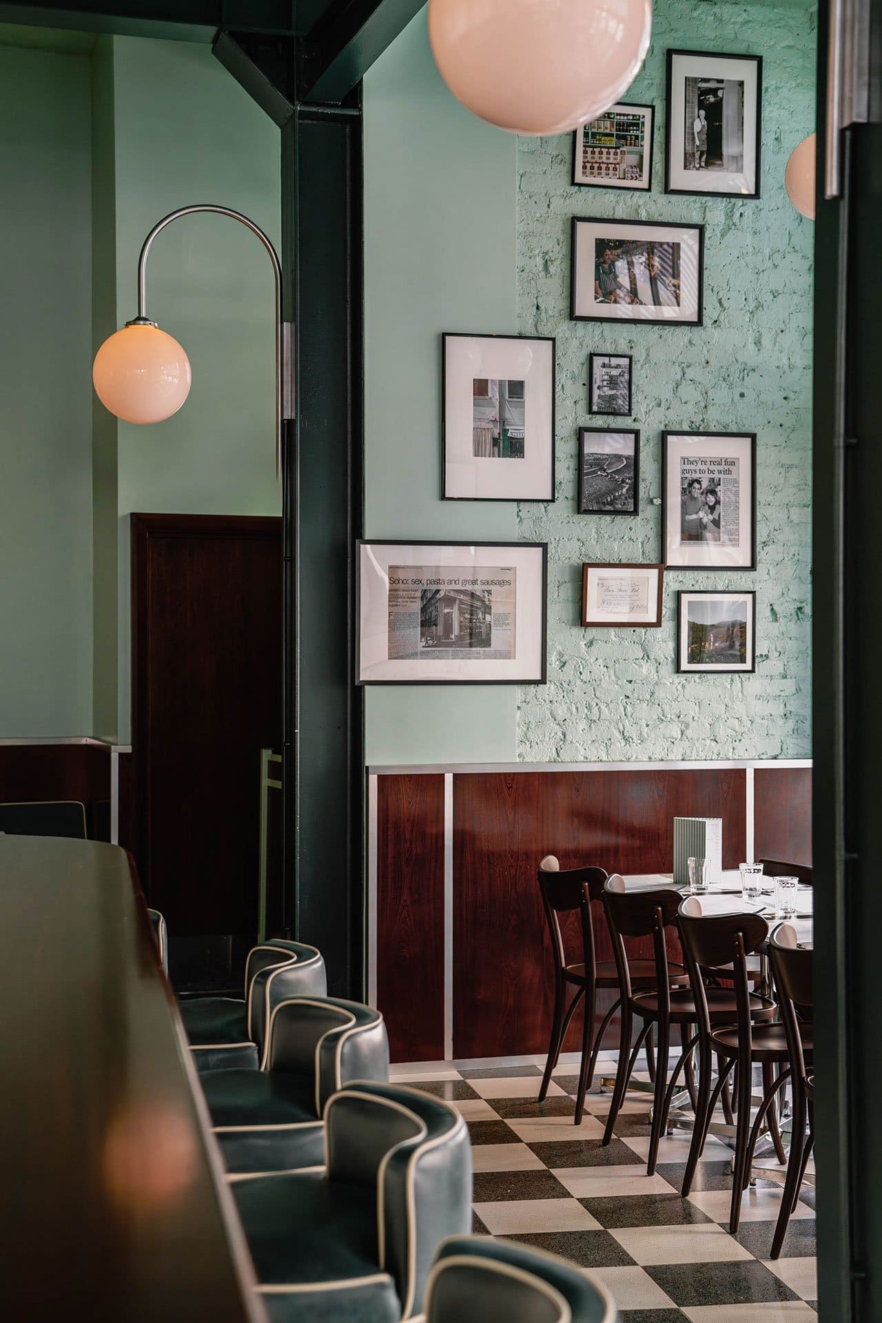The restaurant’s interior boasts a welcoming ambience with plush green booths, marble tables adorned with mismatched Bentwood chairs, and a collection of eclectic artworks adorning the walls. The centrepiece is the unique open-theatre kitchen where you can watch our chefs in action, complemented by a welcoming bar area, perfect for a quick espresso or a classic Negroni.