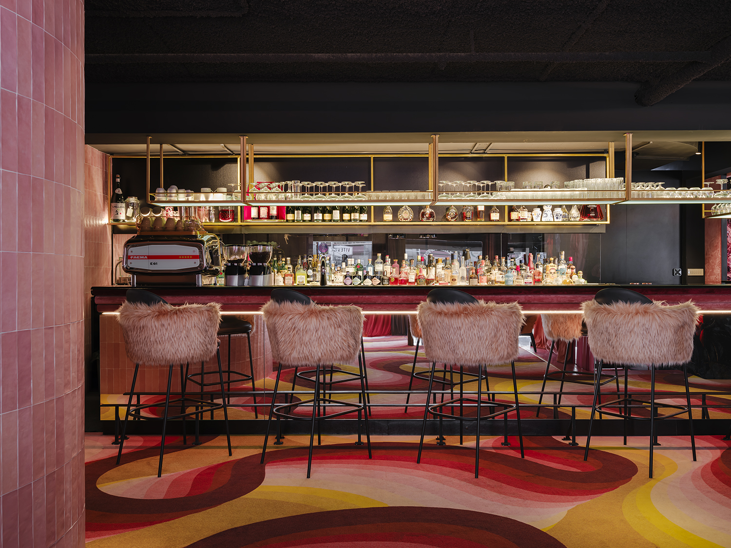 The bathrooms, accessible via a spiral staircase, represent a sort of descent into the “female” world. Here, customers are welcomed into an entirely pink space; this chromatic choice creates a unique and immersive atmosphere, transforming the bathrooms into a distinctive and memorable sensory experience.