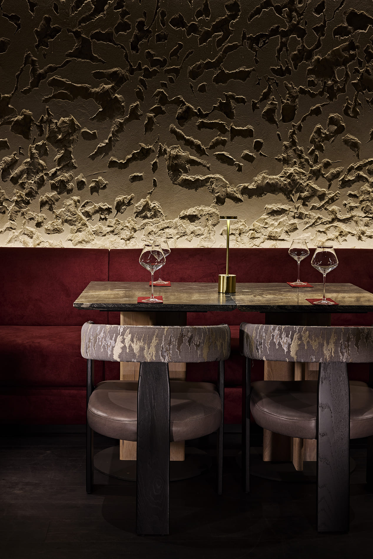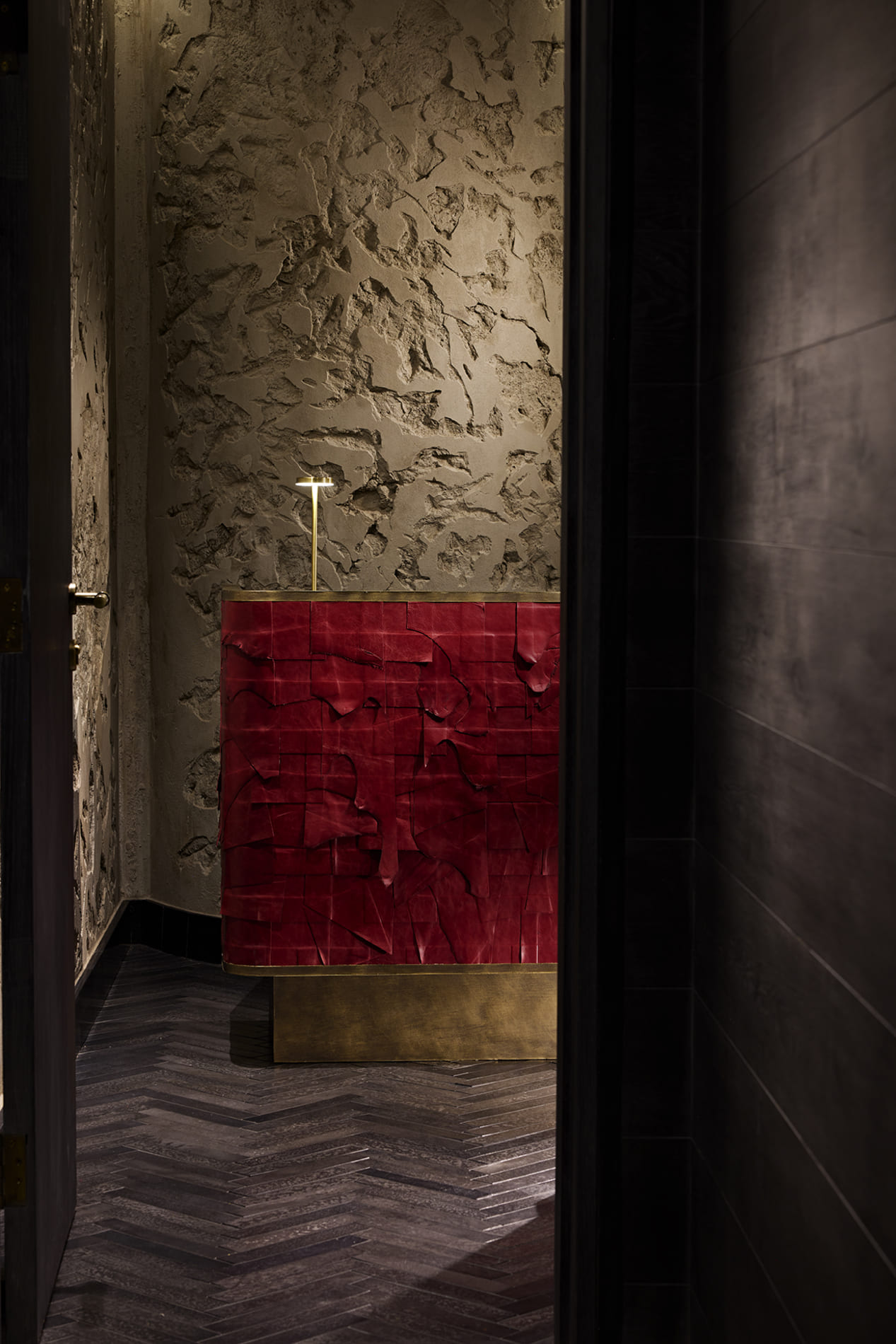 It’s an intimate, social bar with a focus on quality and luxury. What grounds the space so perfectly are the weathered wall finishes- these familiar textures create a deep sense of belonging.