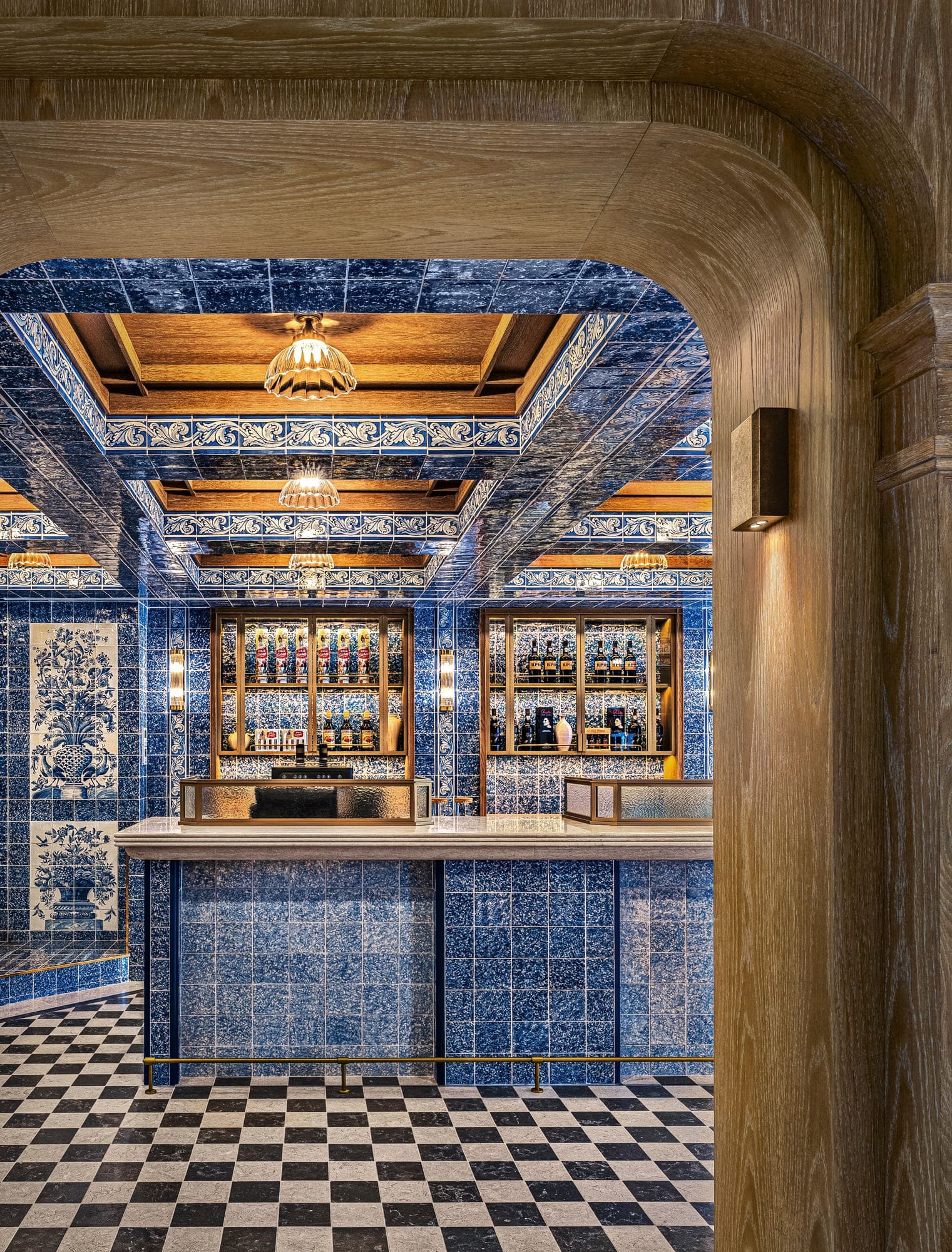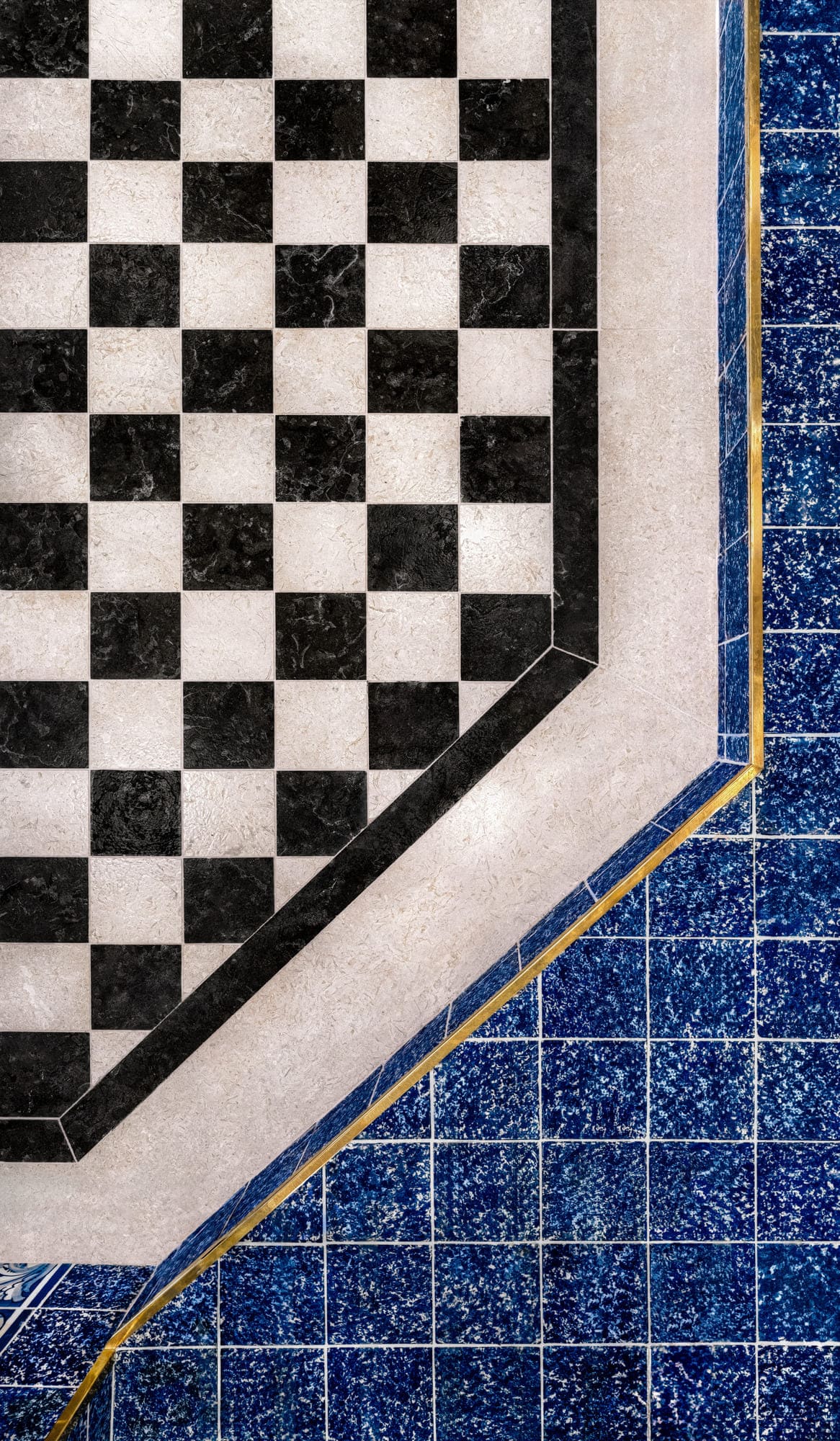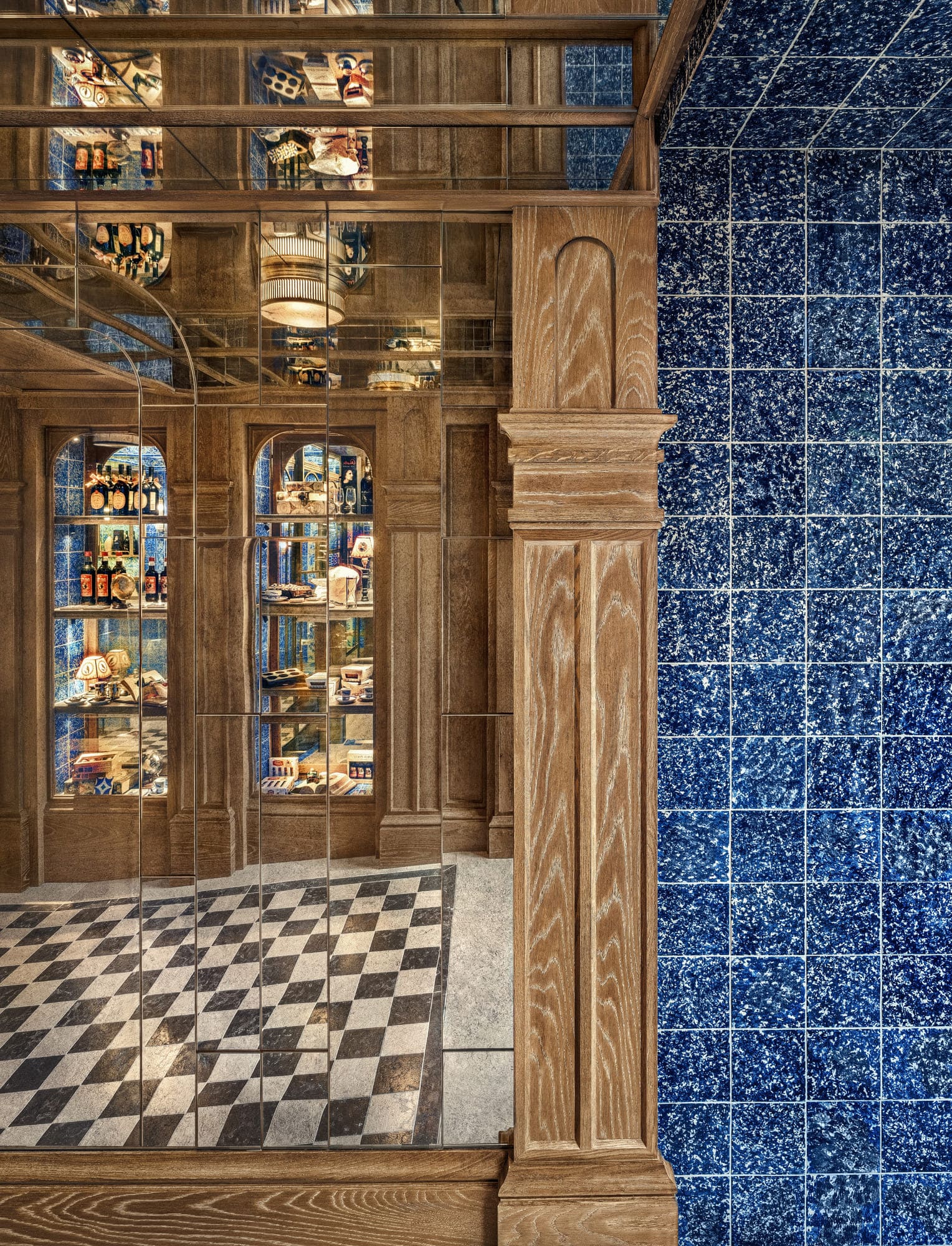 Attention to detail defines every corner: bespoke counters and shelving were designed to integrate functionality with beauty, while subtle brass accents add sophistication without overpowering the simplicity of the materials. The brand’s iconic blue and white tones are reinterpreted in contemporary textures and patterns, maintaining the soul of the original while expressing a renewed identity.