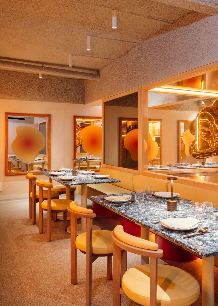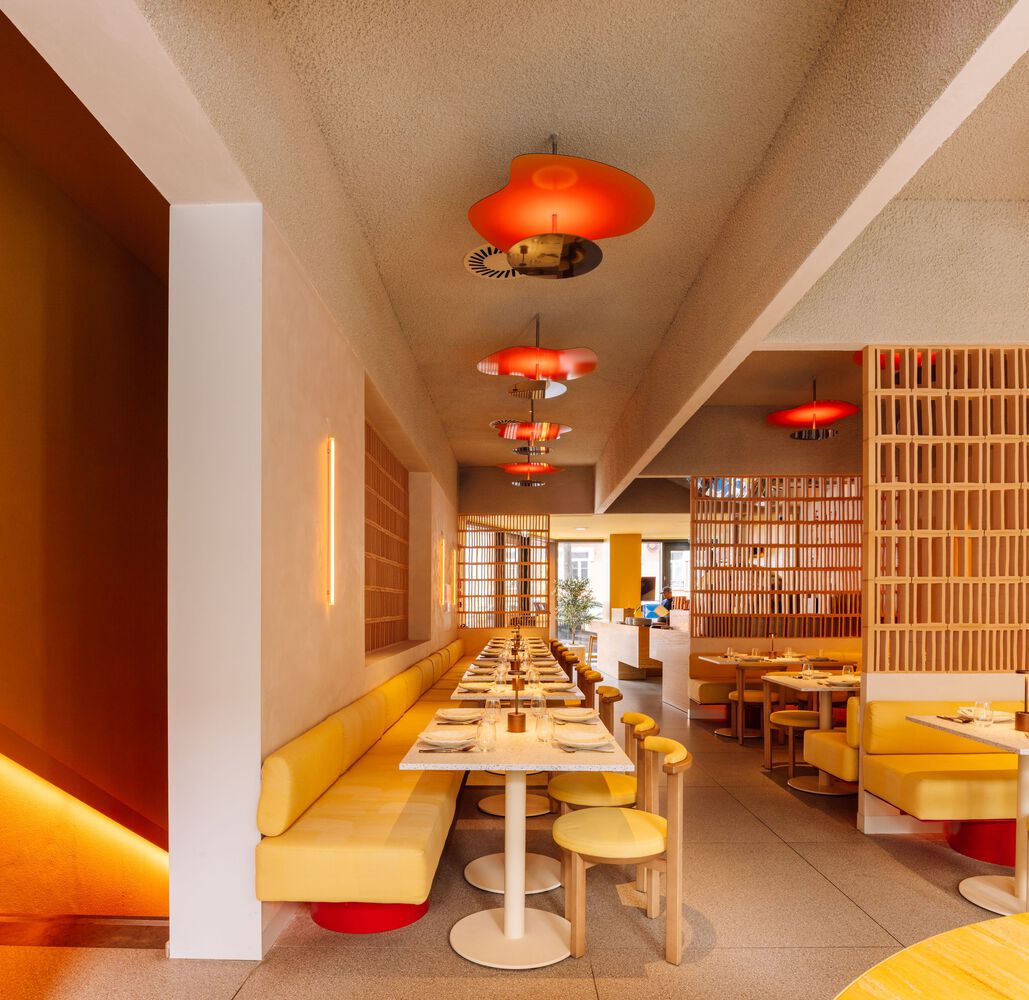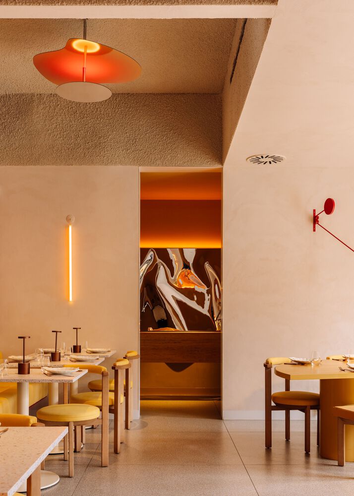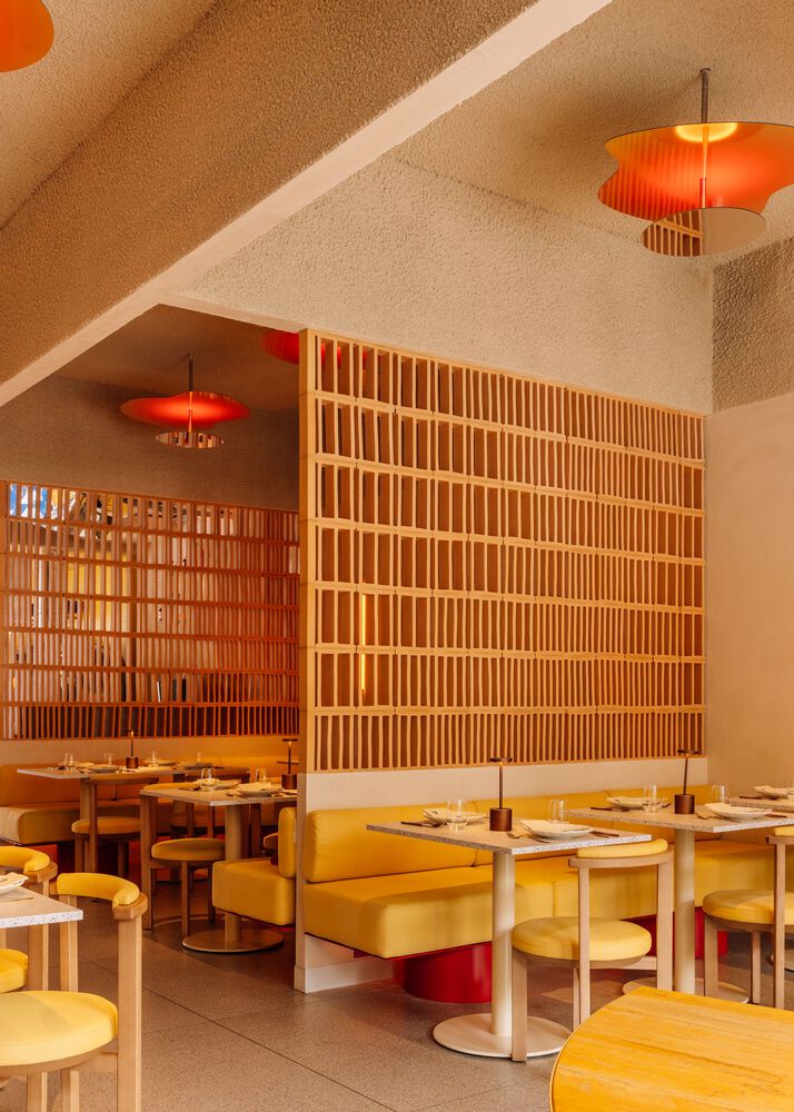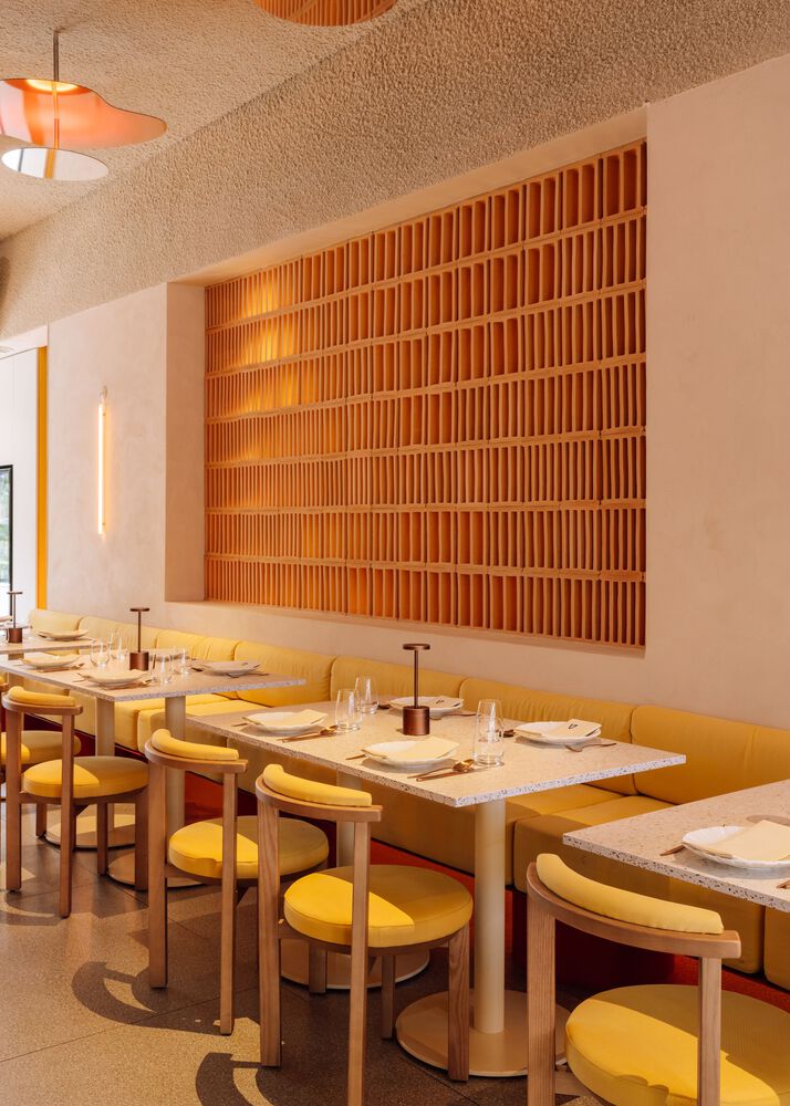 As a contemporary interpretation of that Italian flair, which goes from the Alpine lakes to the olive groves of Puglia, we needed to make sure the food was the principal ingredient in this equation, and that the space to enjoy it was warm and cozy, with bright oranges and yellows, almost an outside looking in perspective, sunny side up.