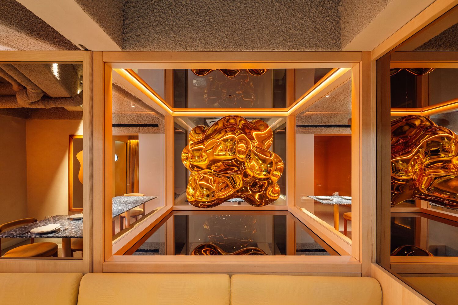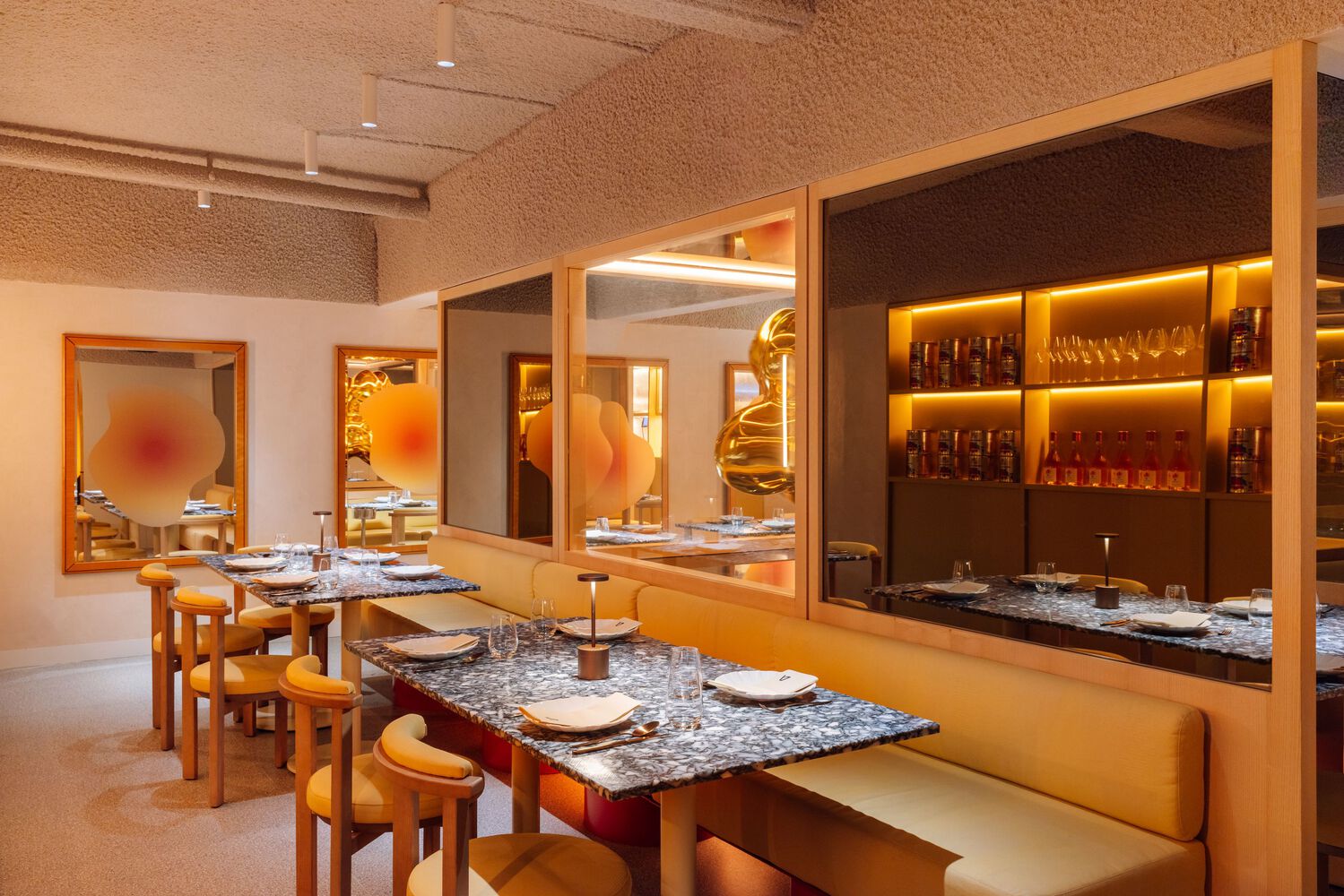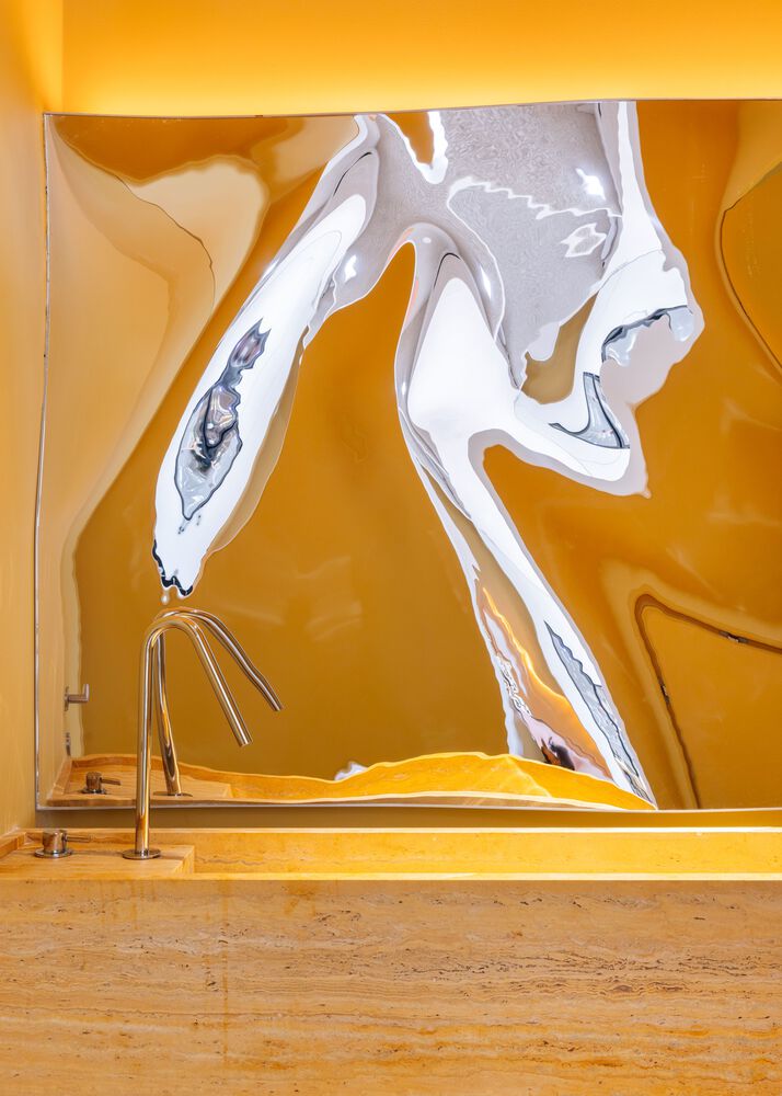 The mirror at SCUSA wasn’t just installed—it was sculpted, molded, and fine-tuned until every curve reflected exactly what we wanted: distortion, warmth, and a subtle sense of wonder. We designed it as a fluid surface that bends perception, inviting guests to see the space—and themselves—from new angles. It plays with scale and movement, echoing the soft forms found throughout the restaurant, while amplifying natural light and spatial rhythm.