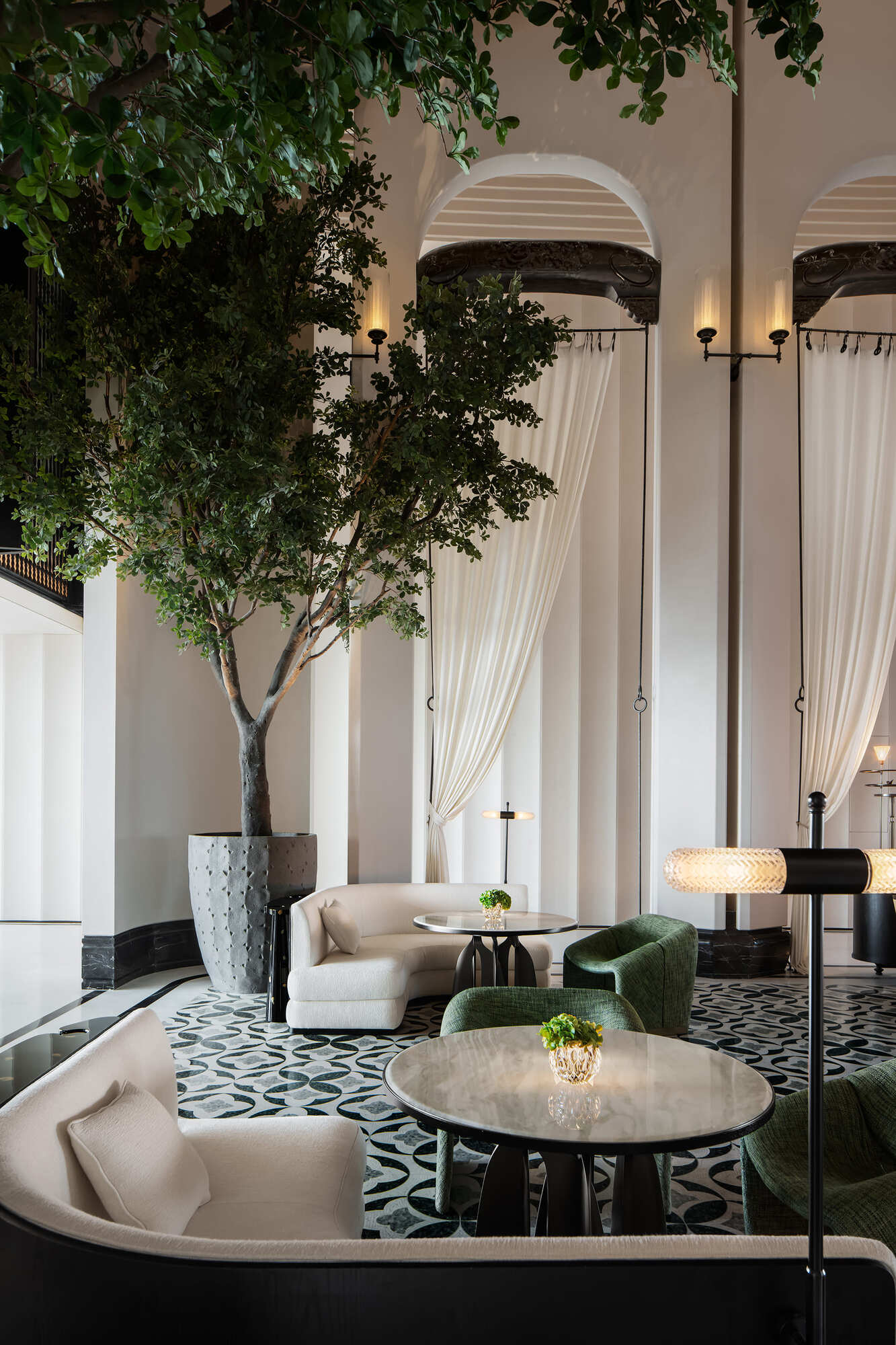 Vertical garden and hanging green plants are densely arranged, inspiring a sense of quiet reverie. Immersed in the garden, guests become wanderers of thoughts, breathing with the spirit of heaven and earth. The space opens up to nature and sunlight, presenting a sense of progressive depth and order.