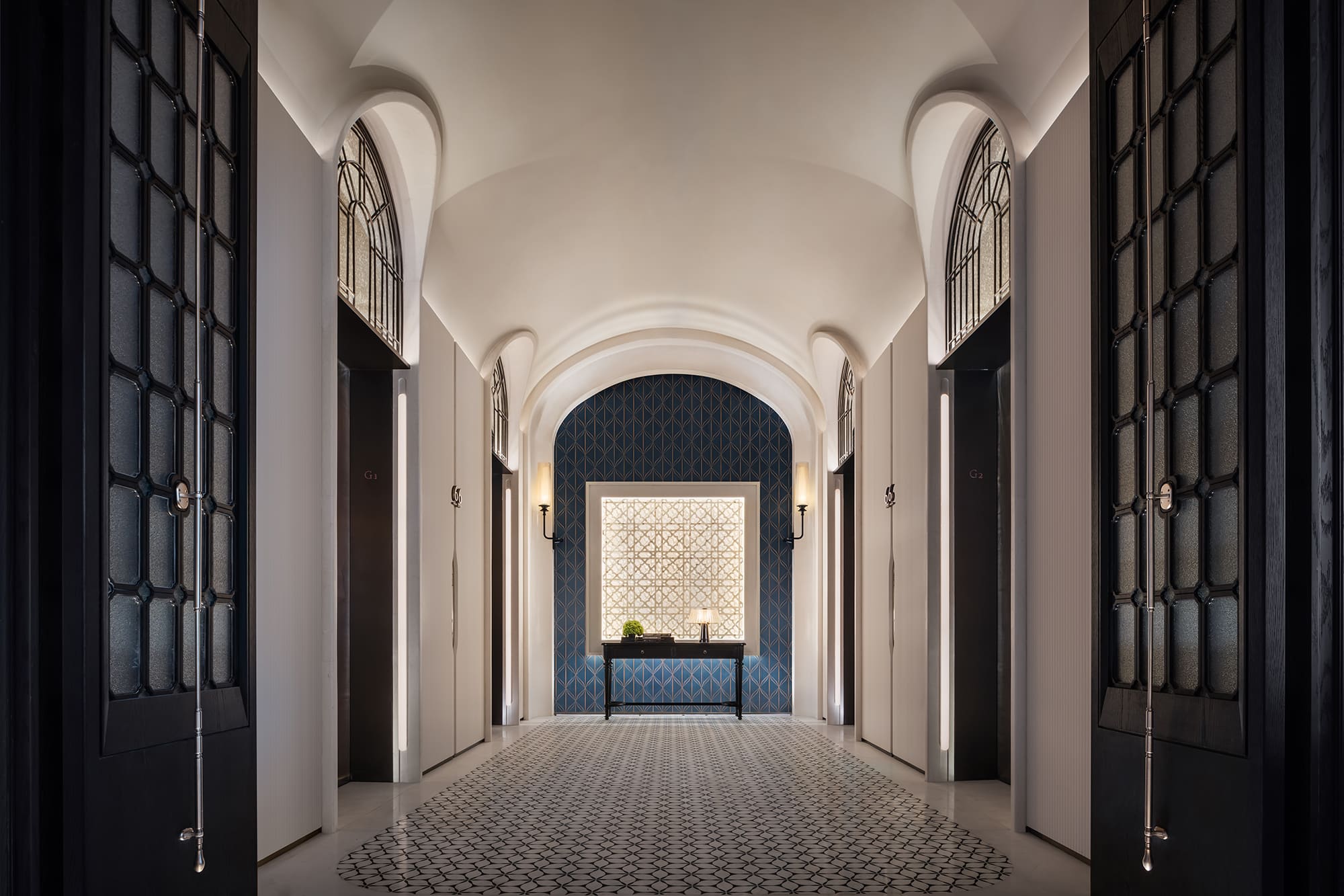 Akin to composing poetry, CCD meticulously crafts a garden that invites guests to interpret and explore. The drop-off area on the ground floor cleverly draws on the layout of Lingnan gardens characterized by “pavilions, bridges, yards, and towers,” creating a scenography with twists and turns, mountain rocks, waterscape, and interweaving flowers and trees. A door, a screen wall, and a bridge present a unique narrative structure and distinct style.