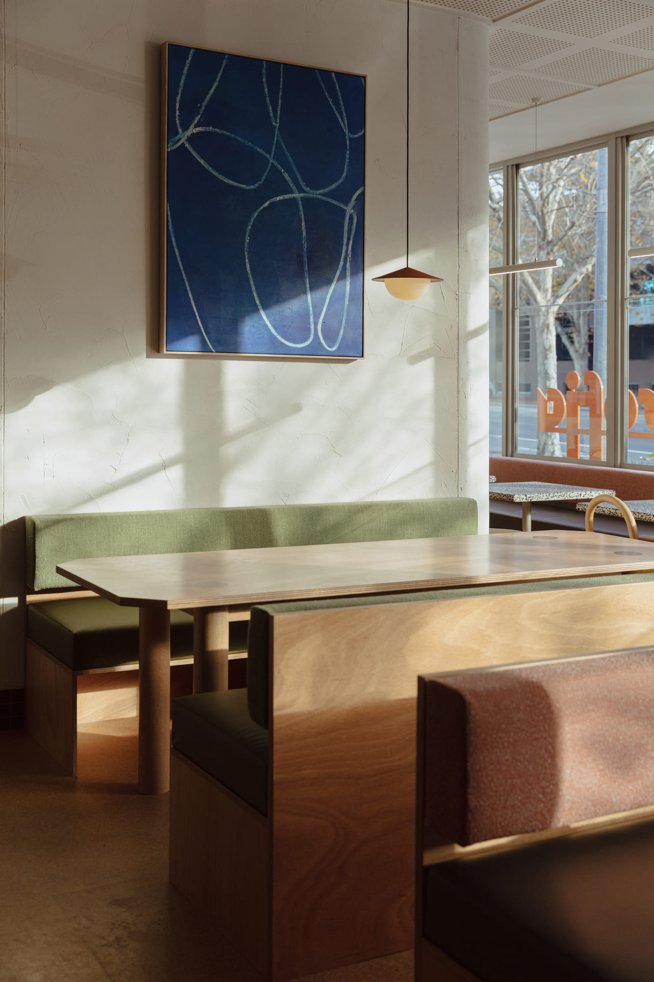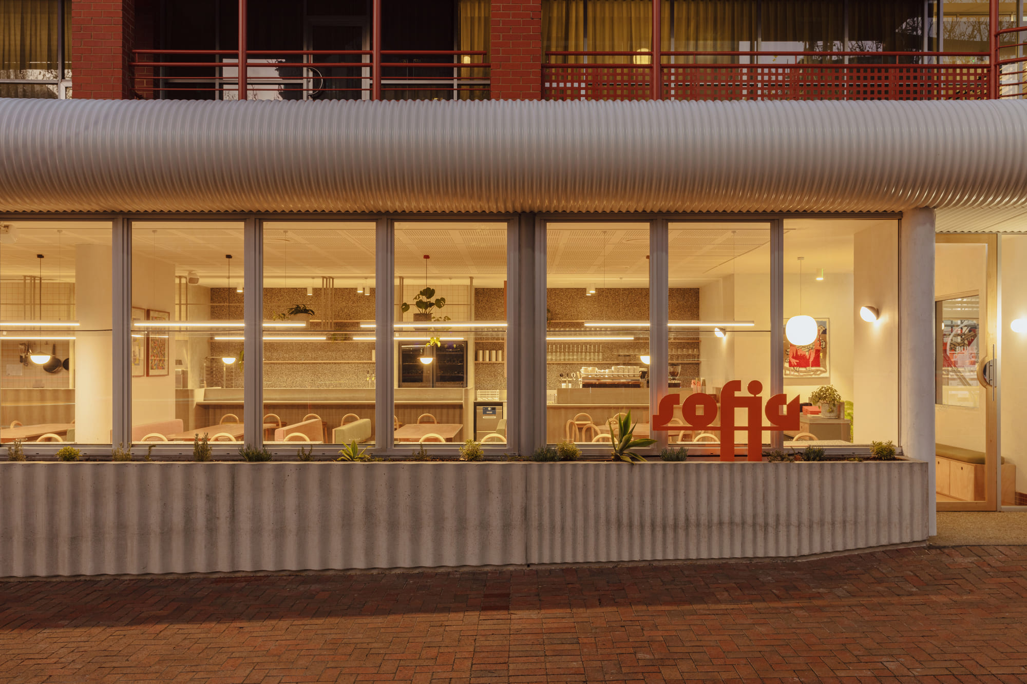 An adaptive re-use project on the edge of Adelaide’s CBD. Inserted into the ground floor of an 80s low-rise office building. Sofia is a bistro, an all-day diner, a warm, light-filled room that opens to the street.