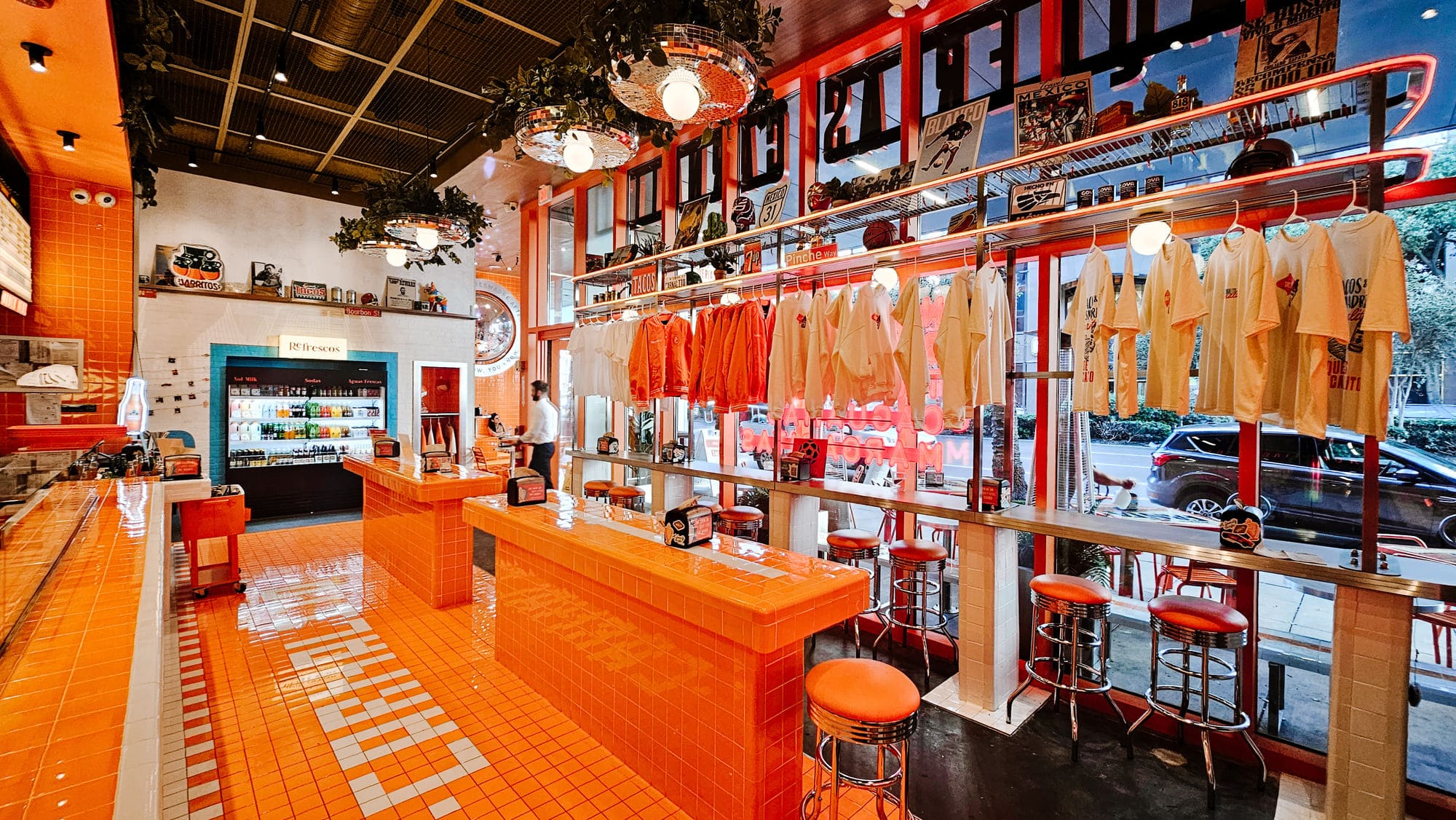 – Urban Dynamics: In the central zone, two high-top bars designed for standing recreate the everyday flow of street stalls, adding flexibility and an informal rhythm to the atmosphere.