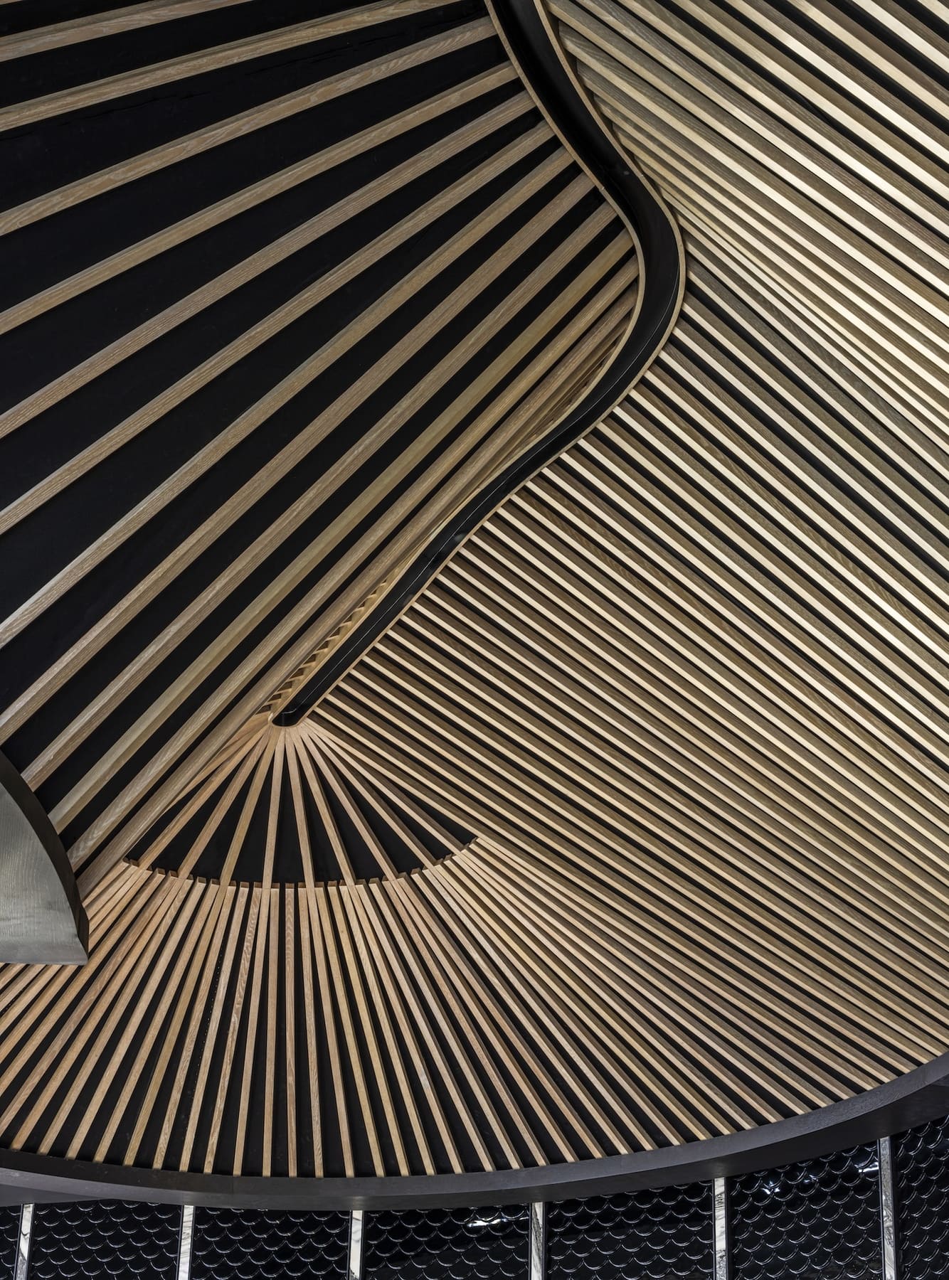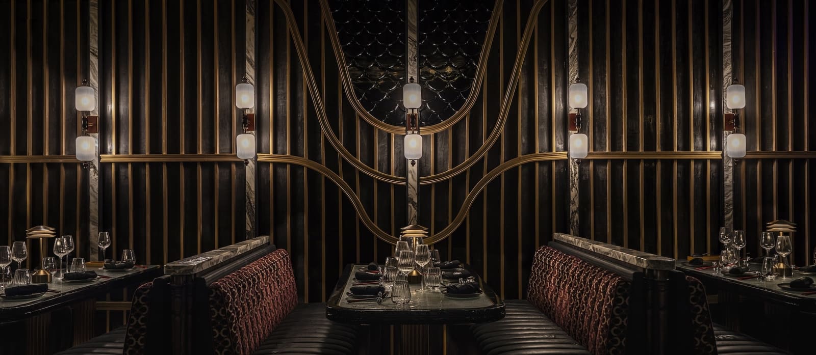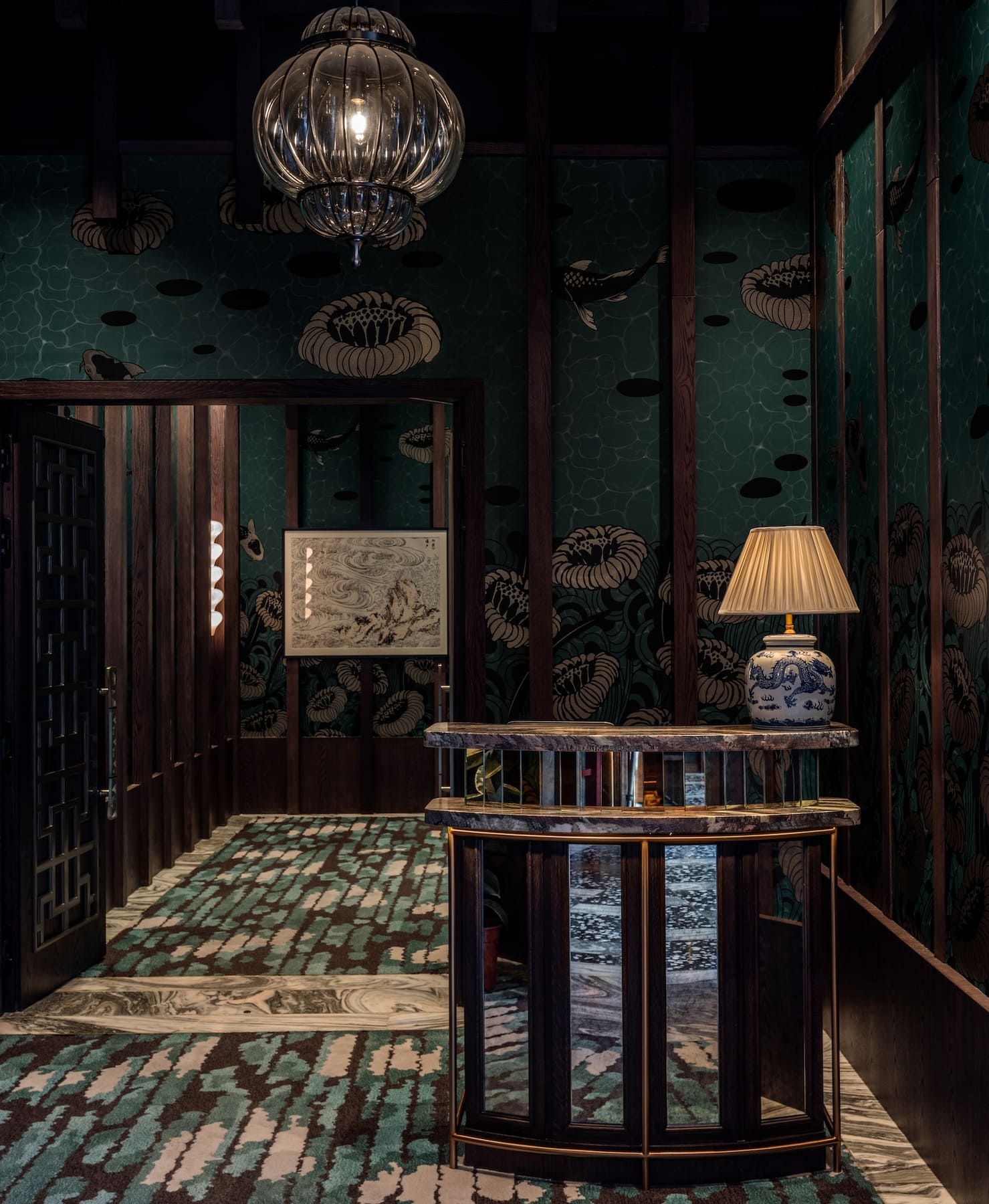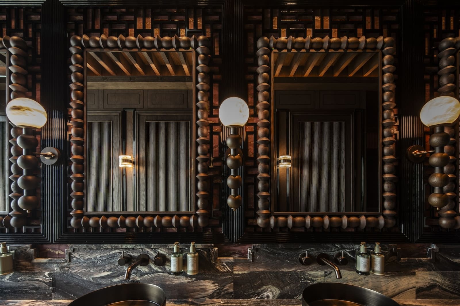 Studio WYZE’s Co-founder and Principal Chris Sayce comments on TATTU Restaurant & Bar’s material palette, saying: “The restaurant adopts a strikingly moody palette – featuring Shou-Sugi-Ban charred Japanese Cedar timber, richly veined marble, amethyst glass, and custom wallpapers – materials that reflect the depth of the black dragon. In contrast, the bar is shaped by the white dragon’s influence, with a lighter palette of white-washed timber, onyx, mirror and pewter.”