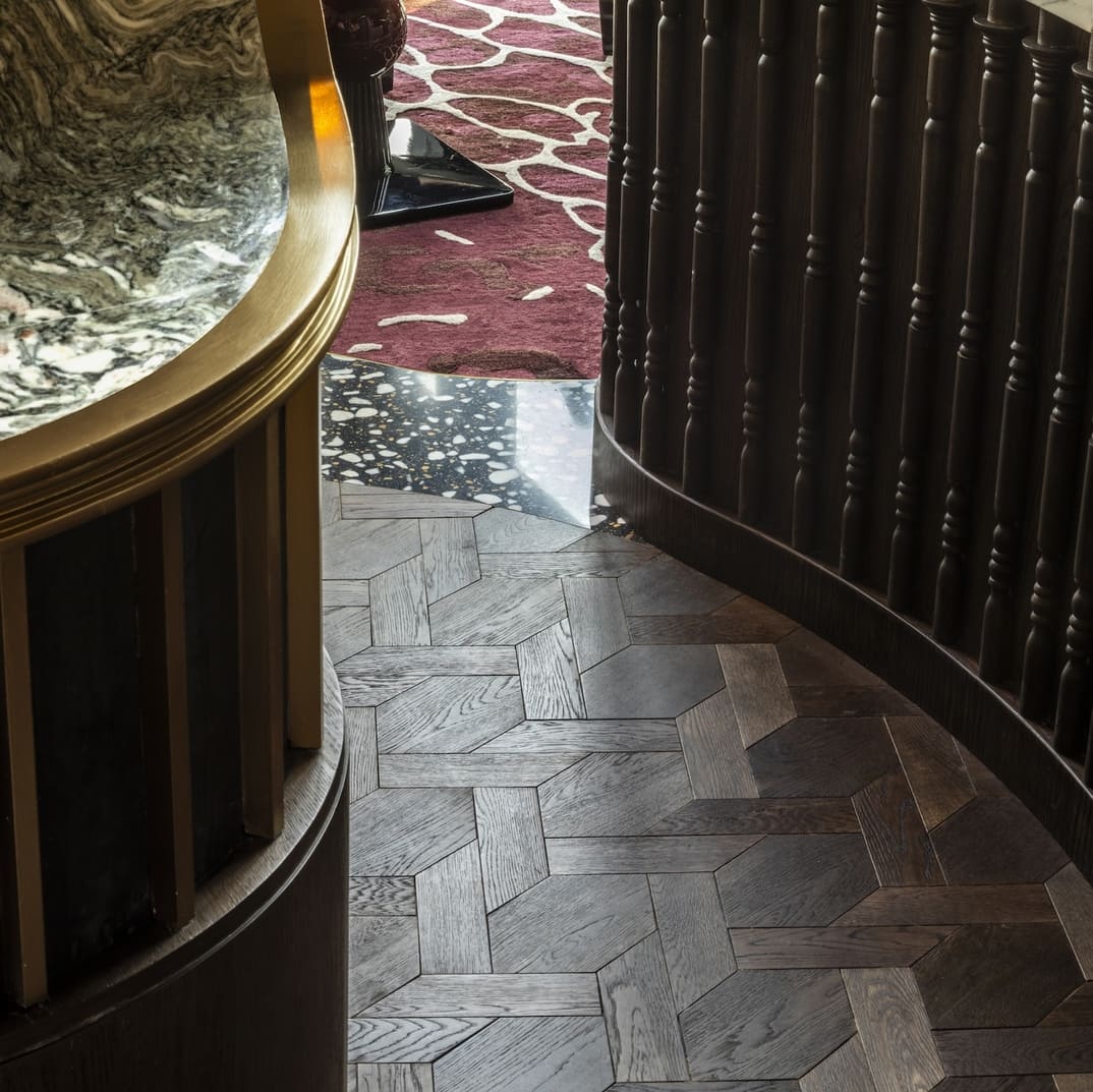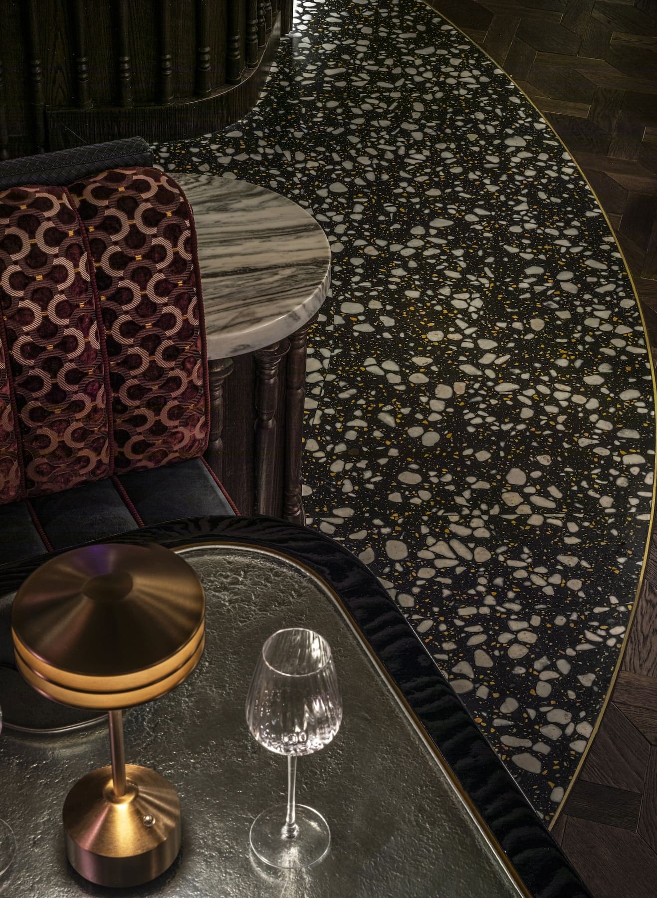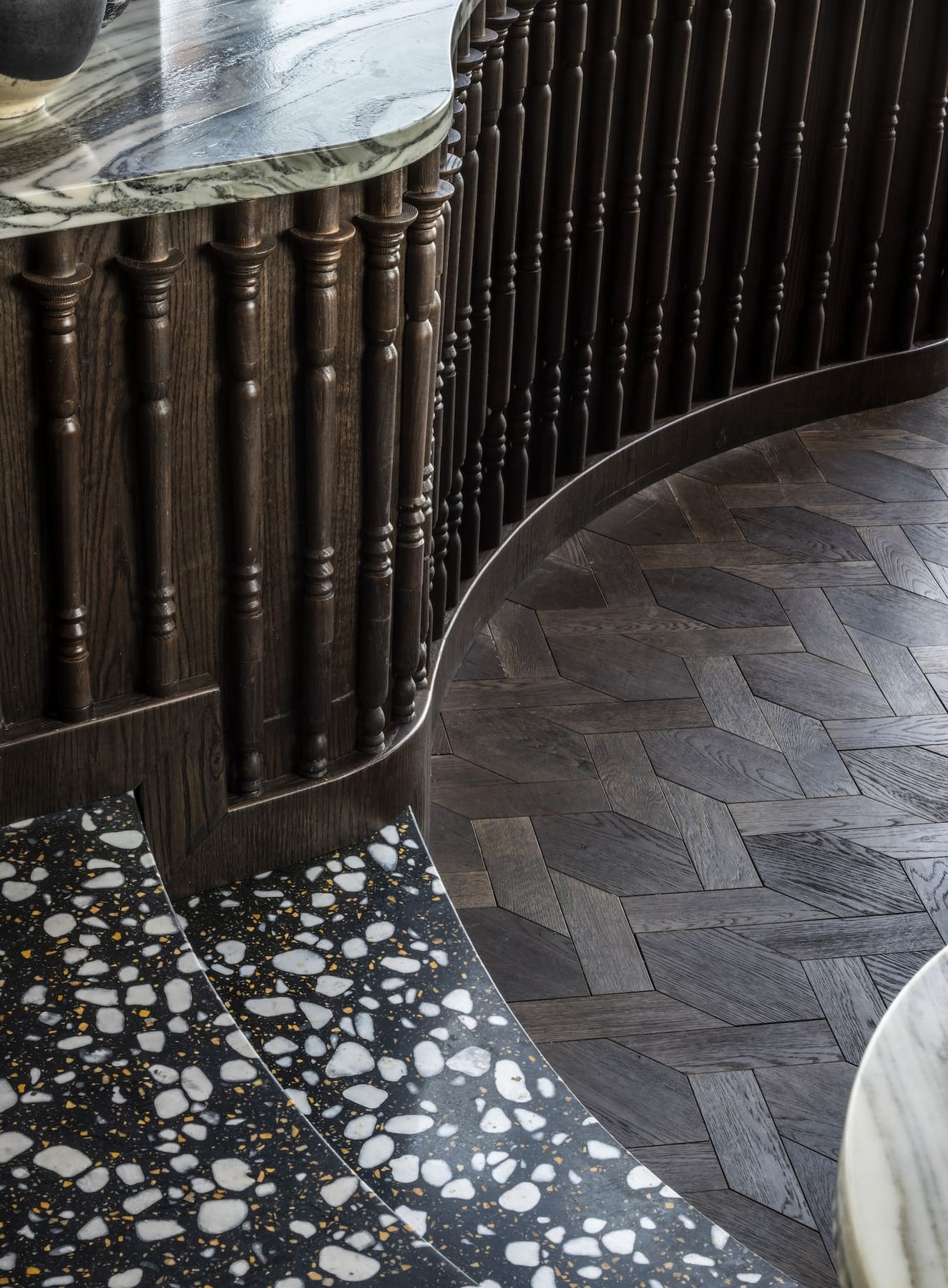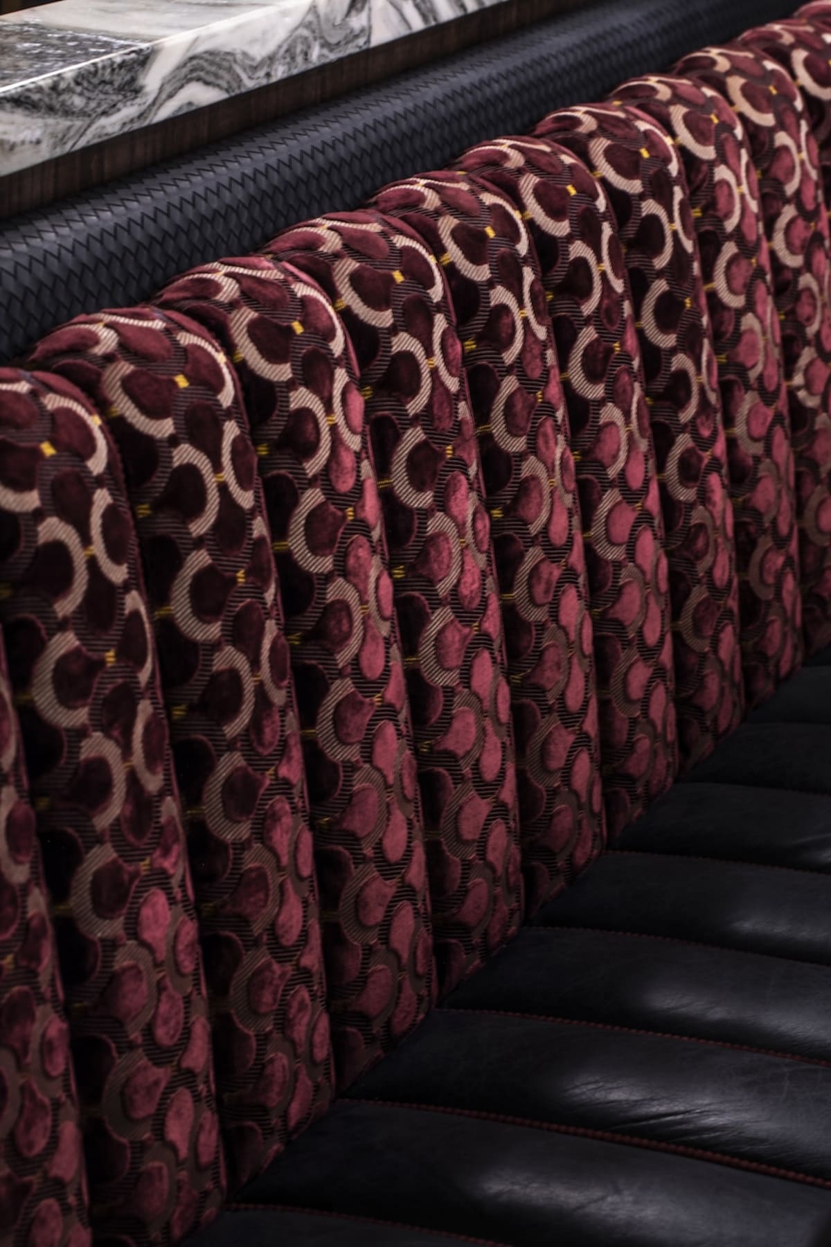 Studio WYZE’s Co-founder and Principal Chris Sayce comments on TATTU Restaurant & Bar’s material palette, saying: “The restaurant adopts a strikingly moody palette – featuring Shou-Sugi-Ban charred Japanese Cedar timber, richly veined marble, amethyst glass, and custom wallpapers – materials that reflect the depth of the black dragon. In contrast, the bar is shaped by the white dragon’s influence, with a lighter palette of white-washed timber, onyx, mirror and pewter.”