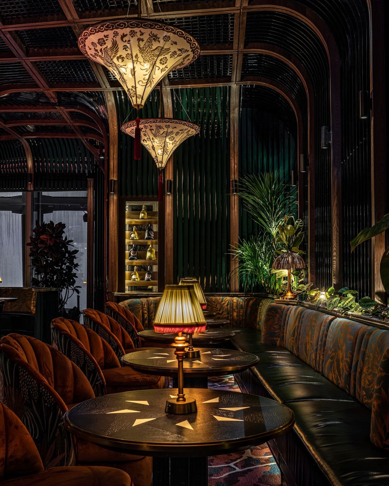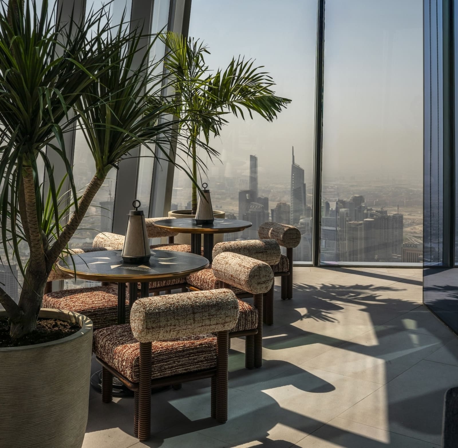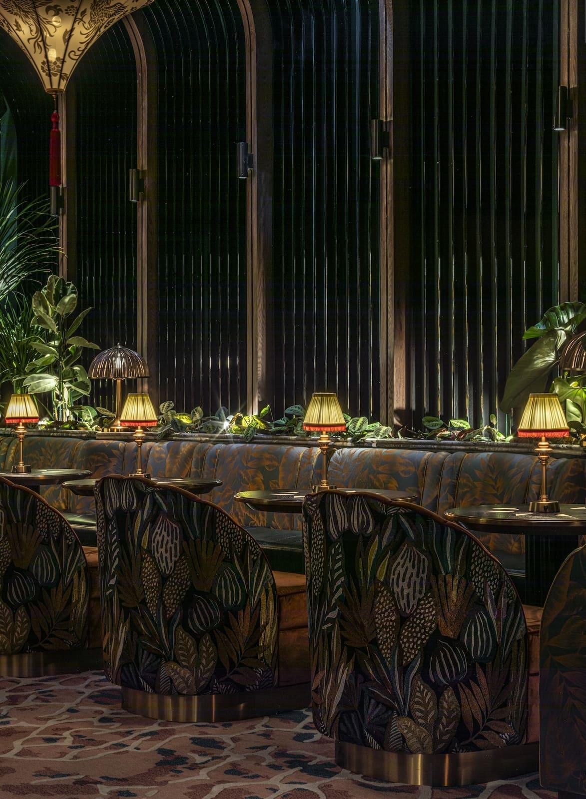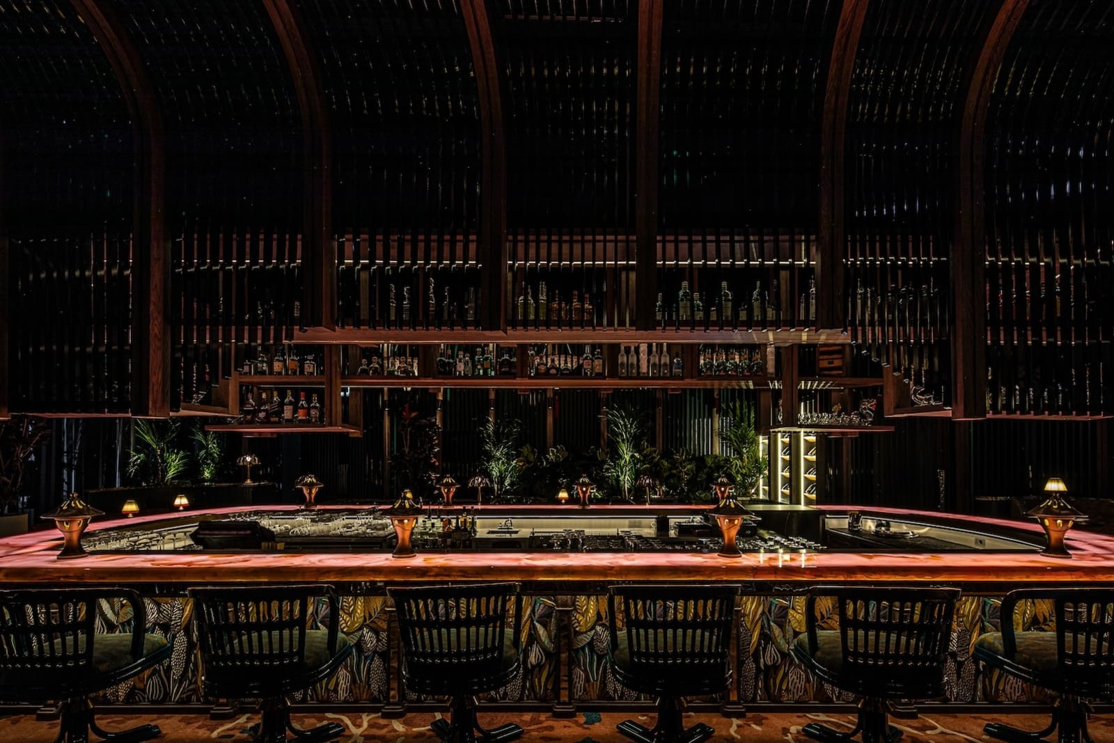 Studio WYZE’s Co-founder and Principal Christina Arbenz, describes the experiential journey as guests move through the Tattu Sky Lounge & Terrace: “Guests are greeted with a vibrant colour palette, tactile fabric-fronted bar, rich textural carpets, and heavily veined marbles, which infuse the space with energy and personality. A setting designed for unforgettable nights high above the city. From the lively interior, guests can flow into the perimeter gallery, a wraparound terrace offering 360-degree views of Dubai. Here, the phoenix narrative extends into the landscape — with Jurassic-style planting and plush lounge seating, creating a surreal ‘roof-top’ orangery.”
