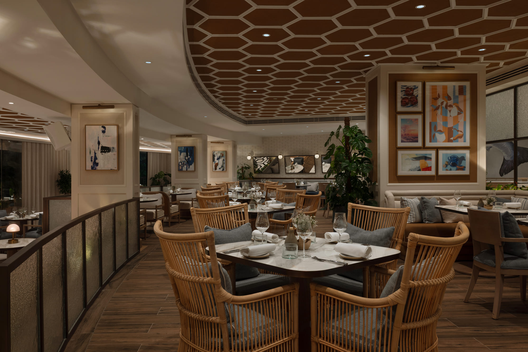 The concept behind The Beam draws inspiration from a modern coastal lifestyle — warm, laid-back, and effortlessly elegant. The interiors embrace the idea of a home away from home, balancing an informal tone with subtle sophistication. The restaurant’s ability to adapt from morning buffet service to à la carte dining in the evening is central to its identity, with every detail supporting this flexible, easygoing rhythm.