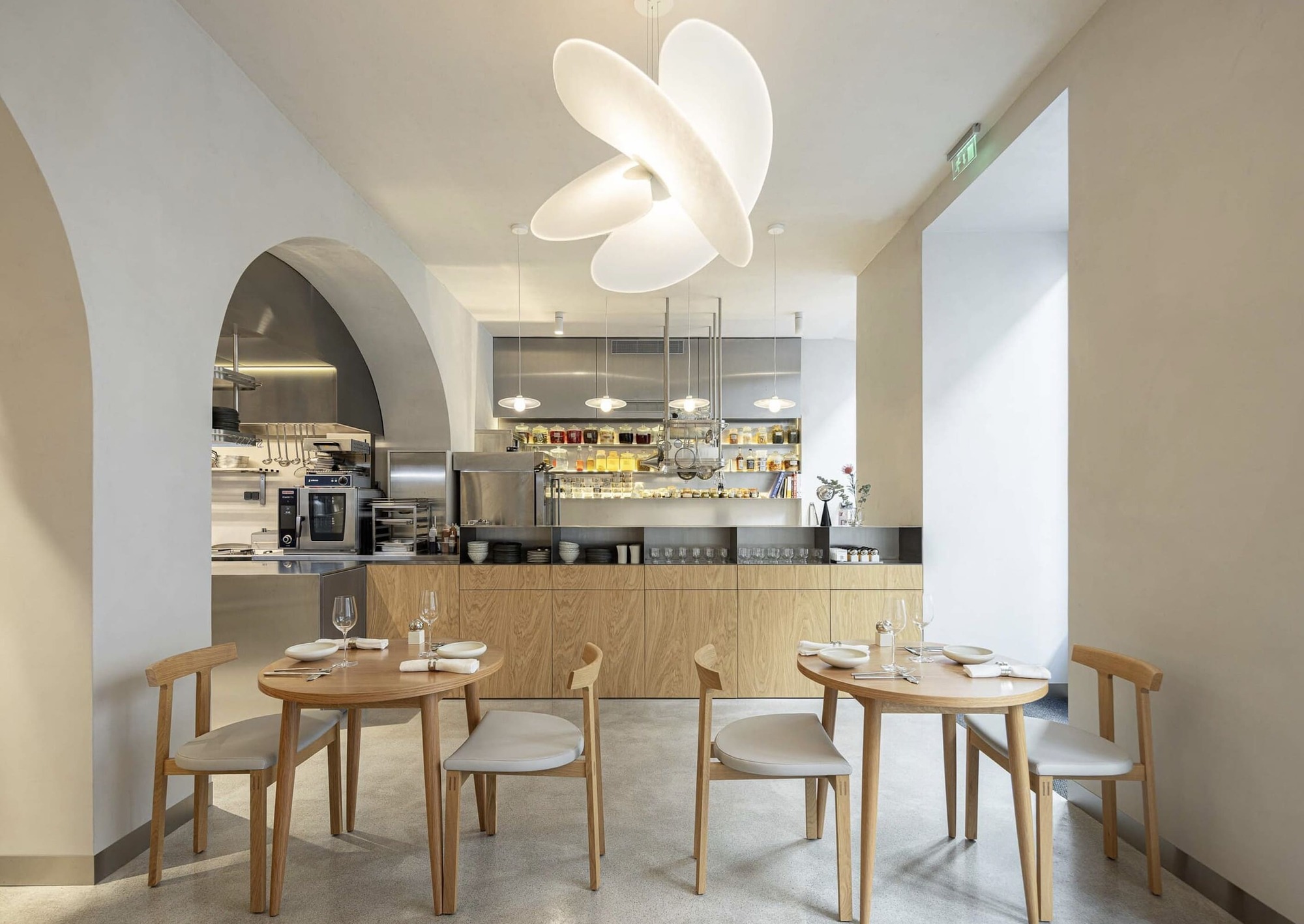 The project transforms a ground-floor space in an 18th-century building into a restaurant with unique features, preserving and highlighting the most significant elements of the existing space — the Arches.