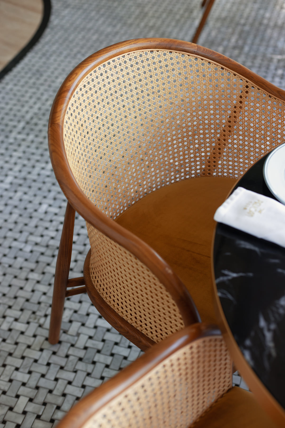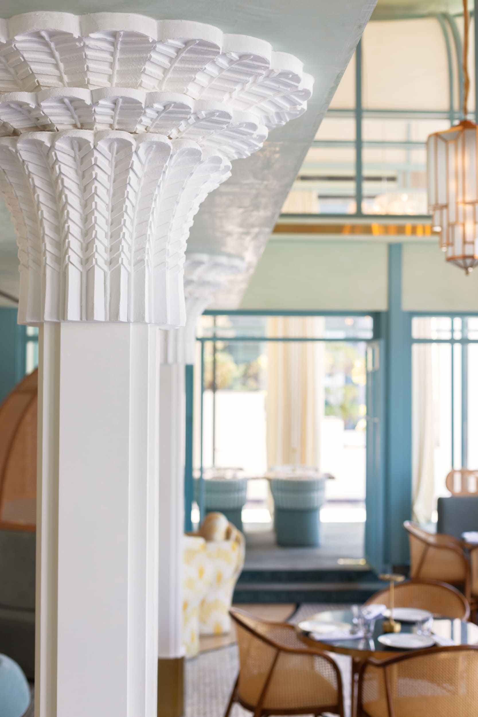 The space itself has been thoughtful planned, to provide areas of social seating alongside more intimate zones, such as the unique, wicker cocooned booth. The design plays with the architecture of the building to enhance the design narrative, with the introduction of florid columns and a space that flexes to work as a PDR, open restaurant seating or the perfect setting for live entertainment.
