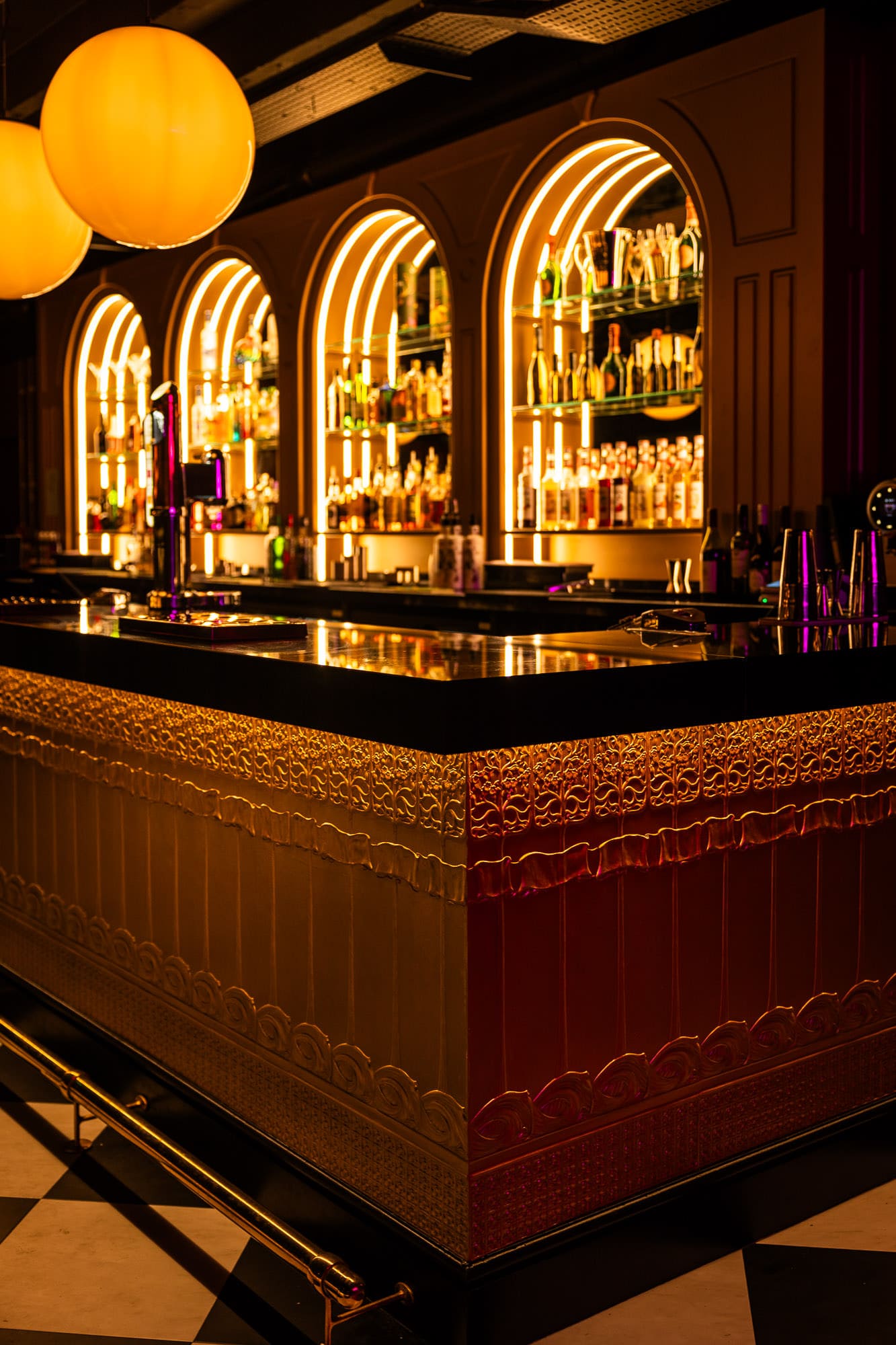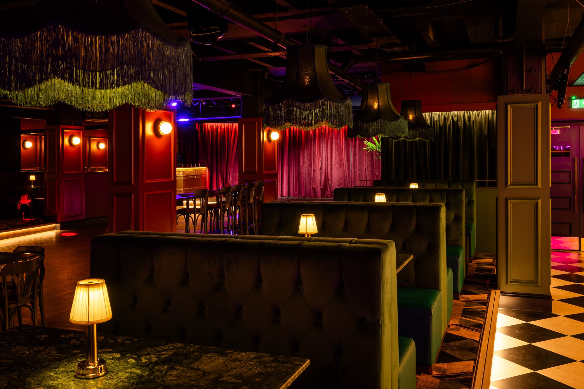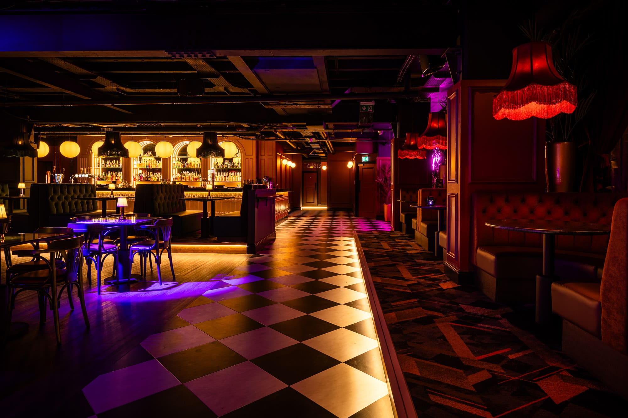 With a brief to convert an existing ten pin bowling venue back to a late night bar / club with nods to the prohibition period of Speakeasy’s and ‘hidden’ live entertainment venues. We were thrilled to be appointed to form part of the team to bring this venue to life. With a strong brief and ‘hands on’ approach from our clients, the interior reflects the clandestine nature of the post ‘jazz age’ of prohibition America. This basement venue evokes a sensation of ‘mischief’ with secluded private booths and sultry lighting throughout the venue. Ornate period mirrors, Lincrusta wallpapers in golds and reds compliment the classic chequer board floors leading to the dancefloor and stage area of this beautiful new ‘hangout’. The club easily translates to satisfy 21st century appetites with state of the art sound and lighting systems to bring the best atmosphere and experience to patrons.