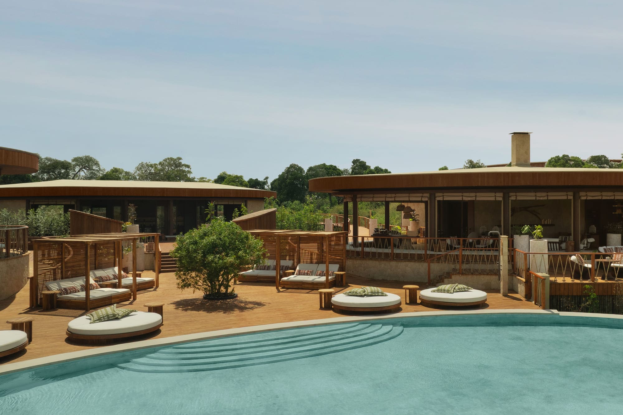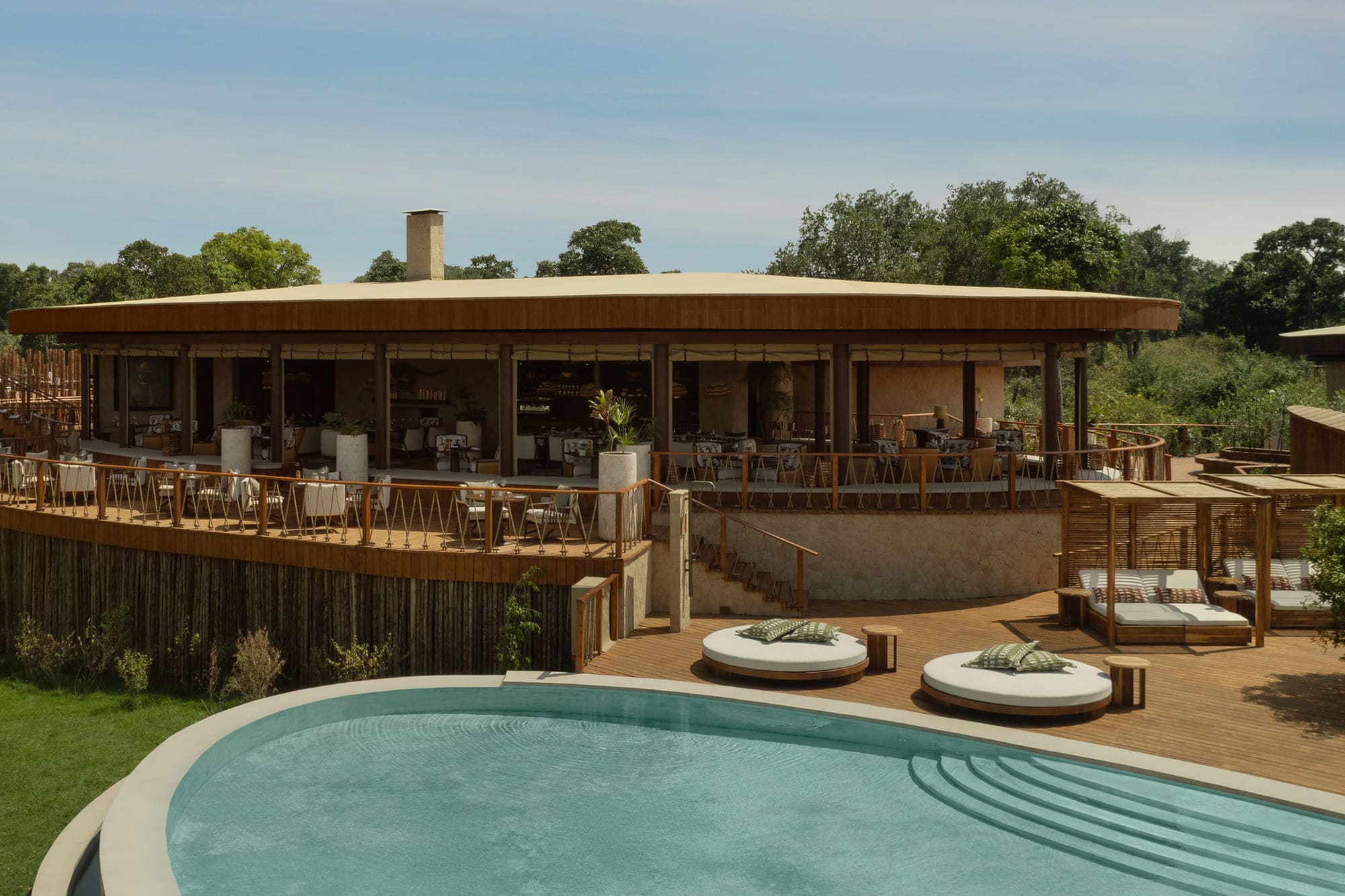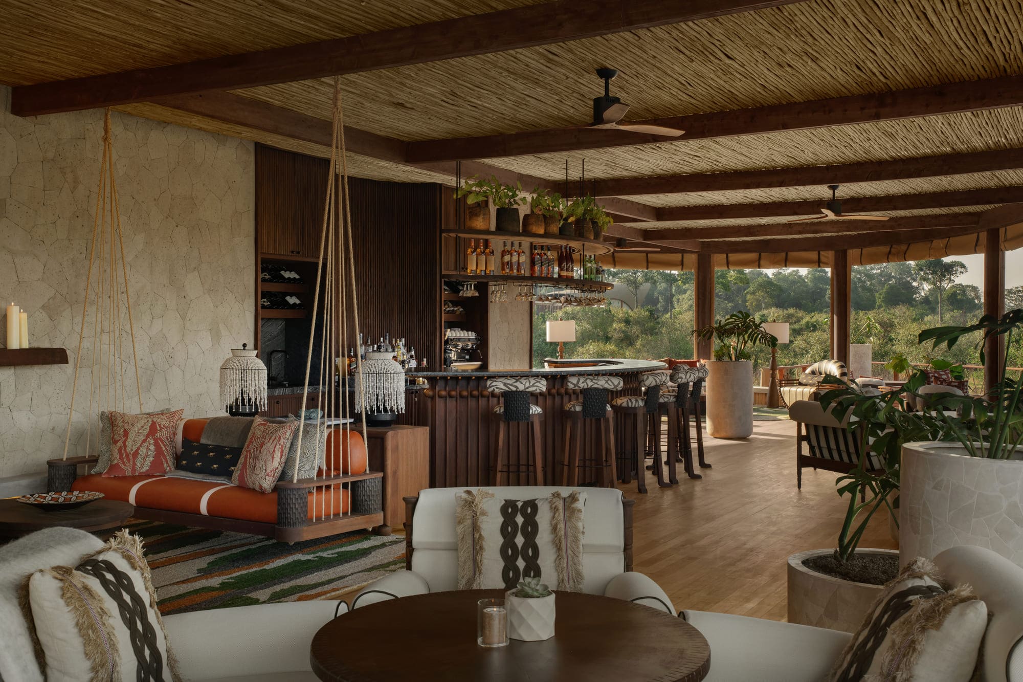 The design features open-air lounges, roll-up tent walls, sunken outdoor seating, and outdoor showers, all designed to blur the line between indoor comfort and outdoor immersion. This seamless connection to nature allows guests to become part of the landscape, fostering an unfiltered connection to the rhythms of the wild.