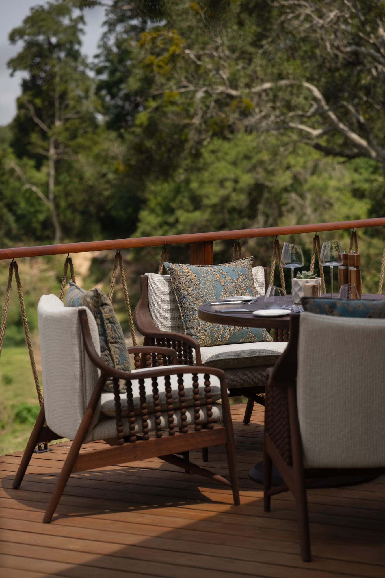 The outdoor sunken lounge, perched above the treetops, offers a floating sanctuary where guests can savor morning coffee, private in-room dining, or quiet moments of reflection, all while fully immersed in the natural rhythms of the Mara. Suspended in the canopy, this elevated vantage point allows guests to be part of the landscape, rather than merely observing it.