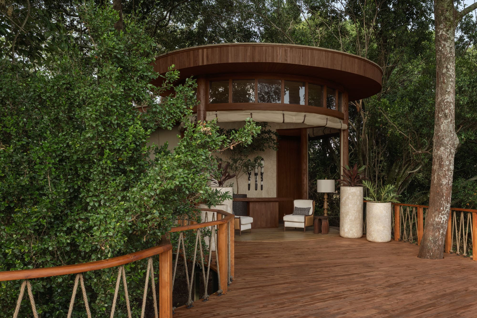 Being elevated places each guest at eye level with the layered forest canopy, offering a rare and immersive perspective that would have been impossible from the ground. Birdlife, wildlife moving along the riverbanks, and the shifting play of light through the leaves all become part of the guest experience, creating an ever-changing natural theater.