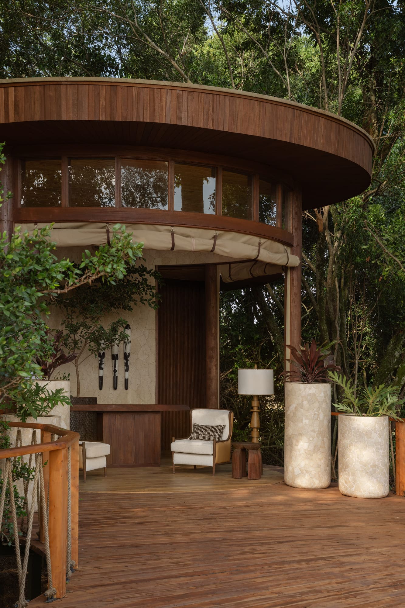 Nowhere is this philosophy more deeply felt than in the Whispering Tree Spa, a sanctuary nestled within the surrounding treescape. Here, the architecture dissolves into nature—quiet pathways meander between trunks, treatment rooms open to filtered forest light, and the natural scent of bark and leaves becomes part of the wellness journey. It is a space that doesn’t just exist beside the forest, but within it—amplifying the narrative of rootedness, restoration, and quiet reverence that defines the entire project.