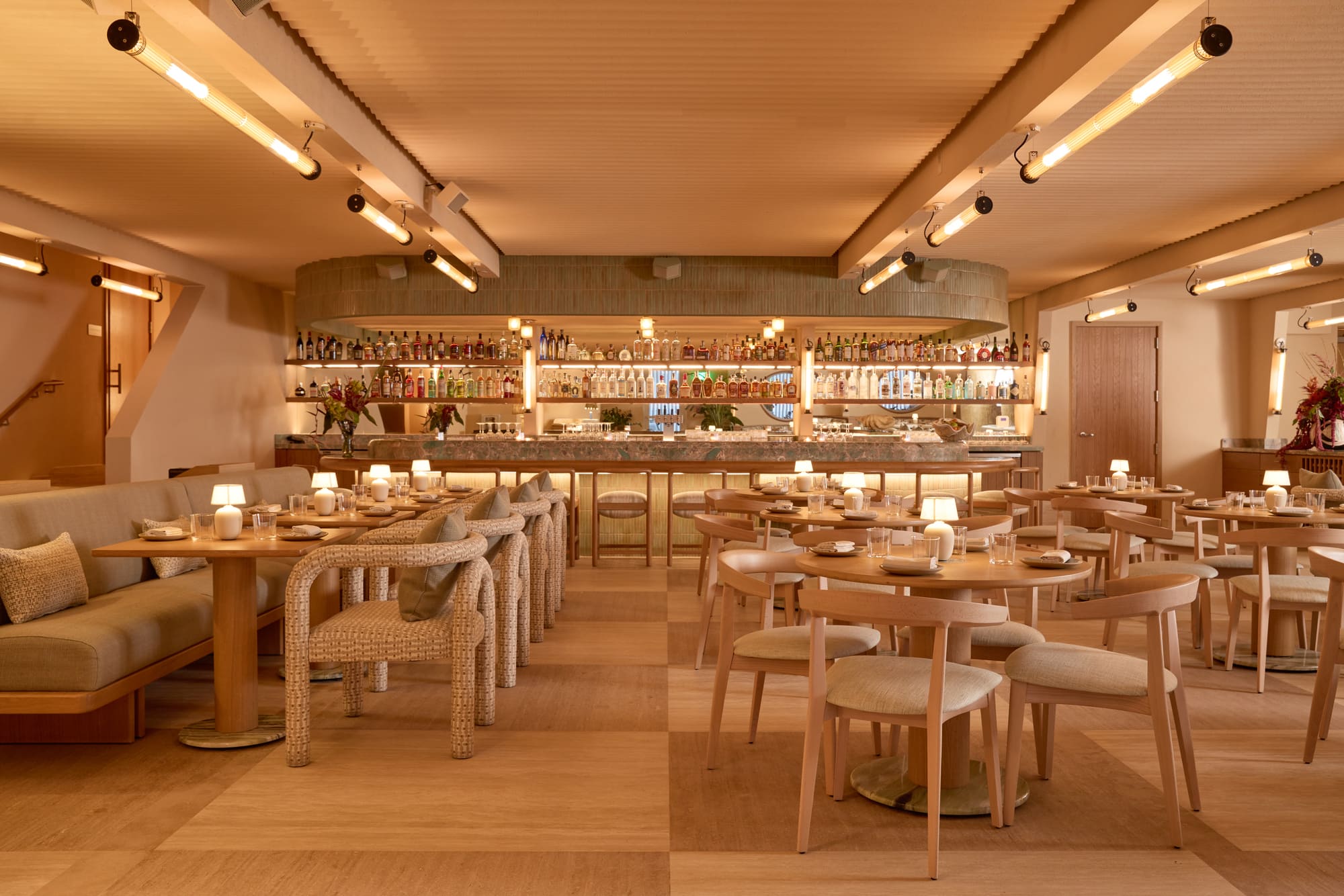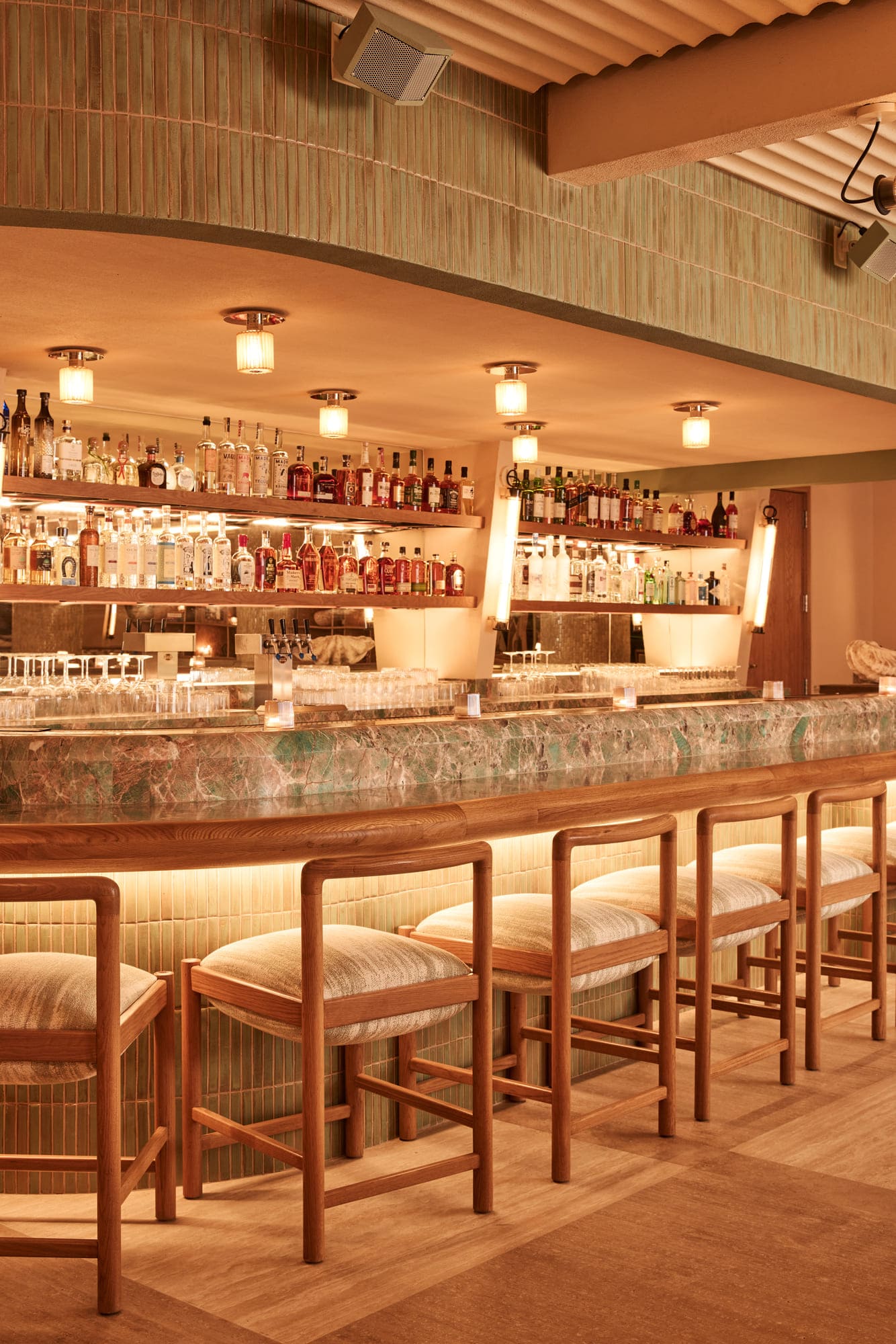 The Little Torch cocktail lounge offers a moodier, more intimate escape. Tables crafted in onyx and custom designed by ADC & Tuneu set the tone for a sophisticated yet playful aesthetic.