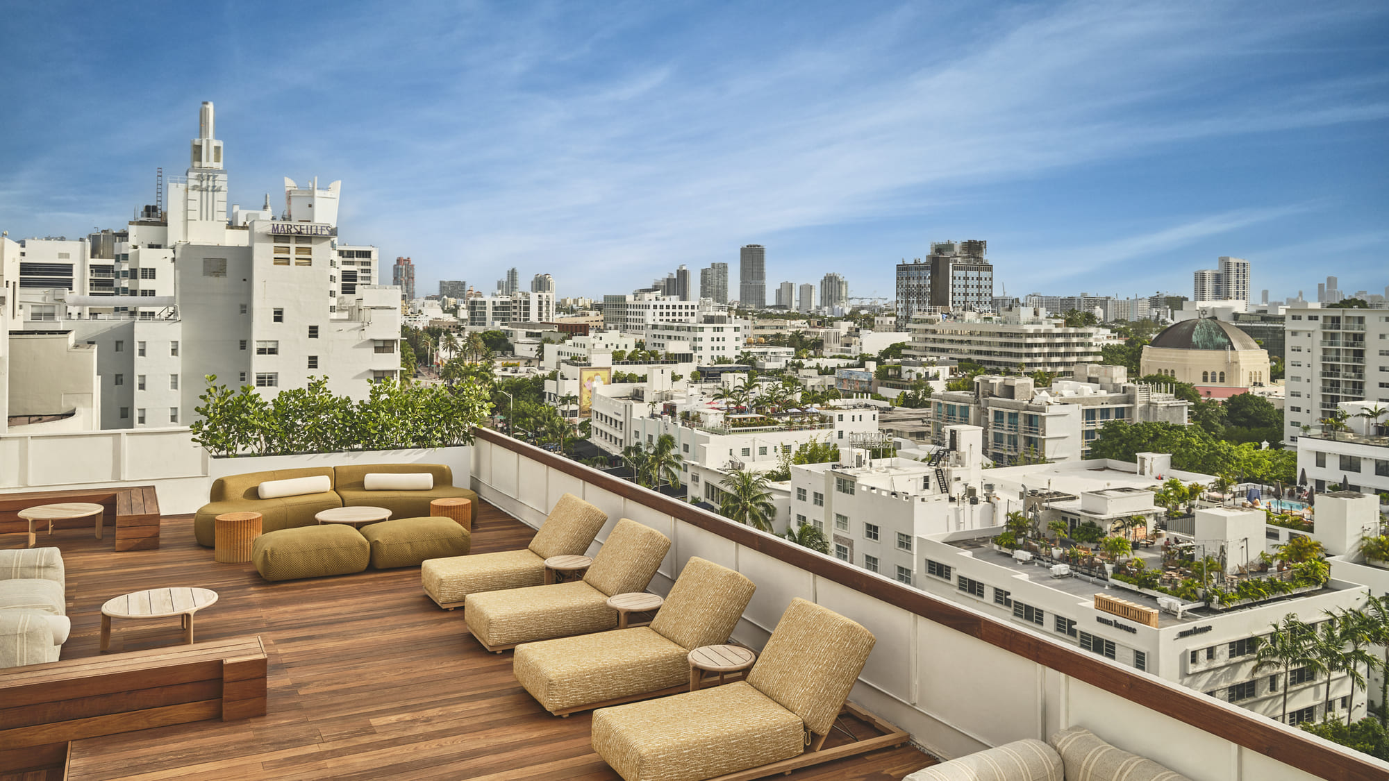 From the preserved 1950s pool deck, with its aqua accents and iconic diving board, to the 300 rooms and suites that merge mid-century elegance with contemporary ease, each space tells a story. Bespoke textiles also feature in the concept by ADC & Tuneu, most notably on the sun loungers with a design made to capture the vibrant colours of the ocean. Vintage-inspired glass details, travertine floors, and locally-crafted furnishings evoke a distinct sense of Miami’s coastal identity.