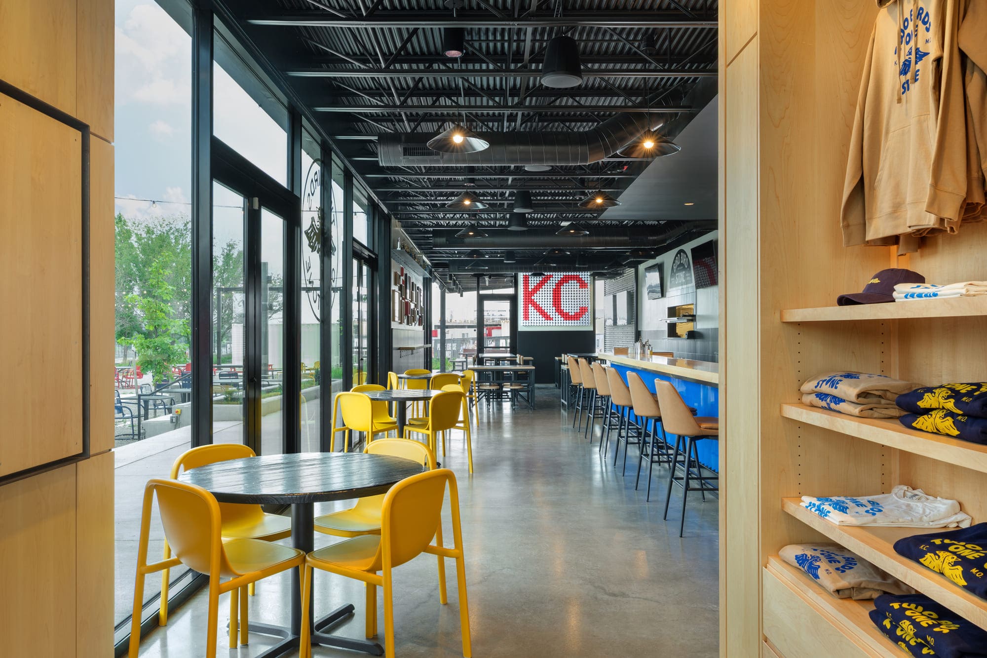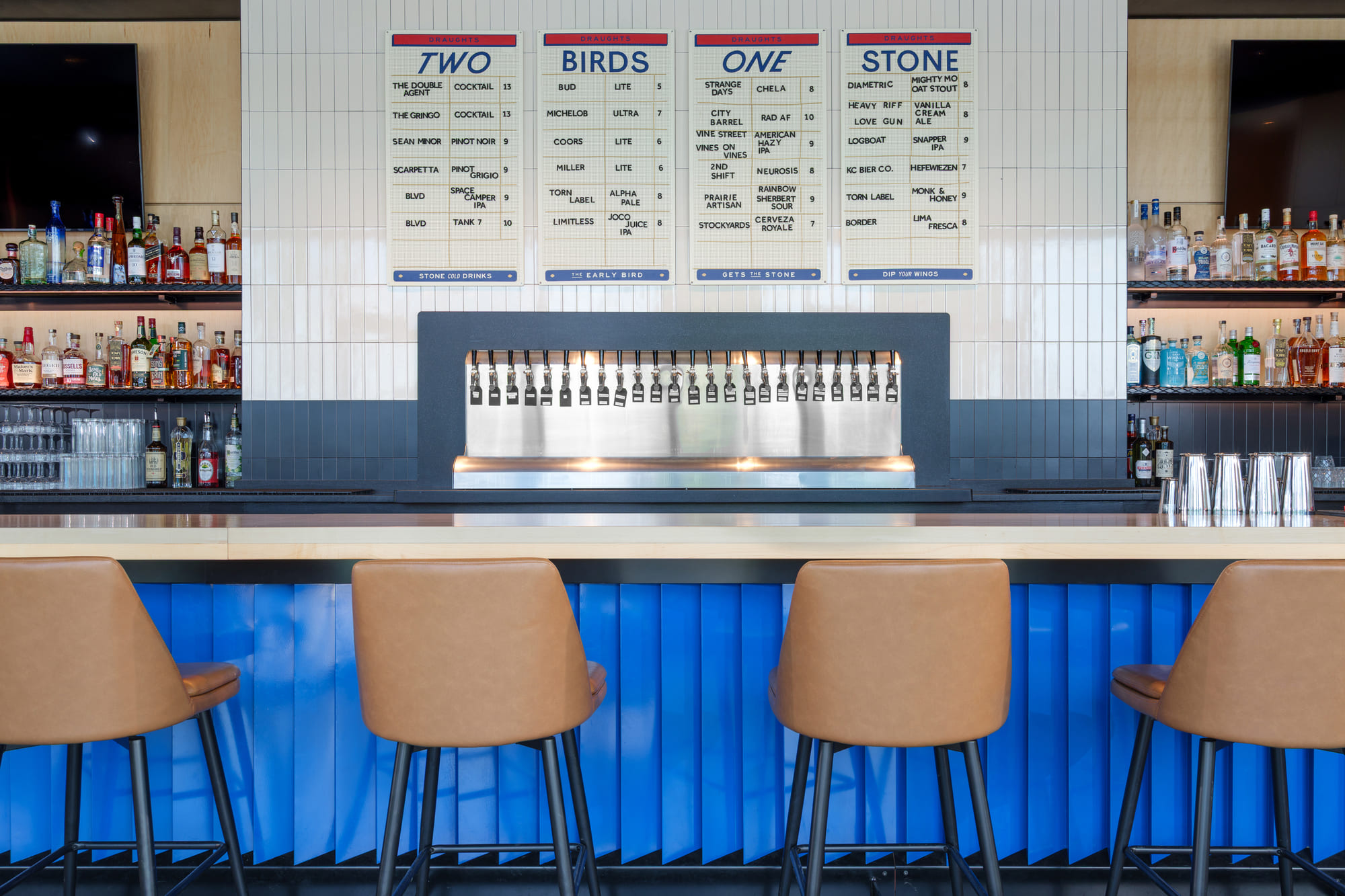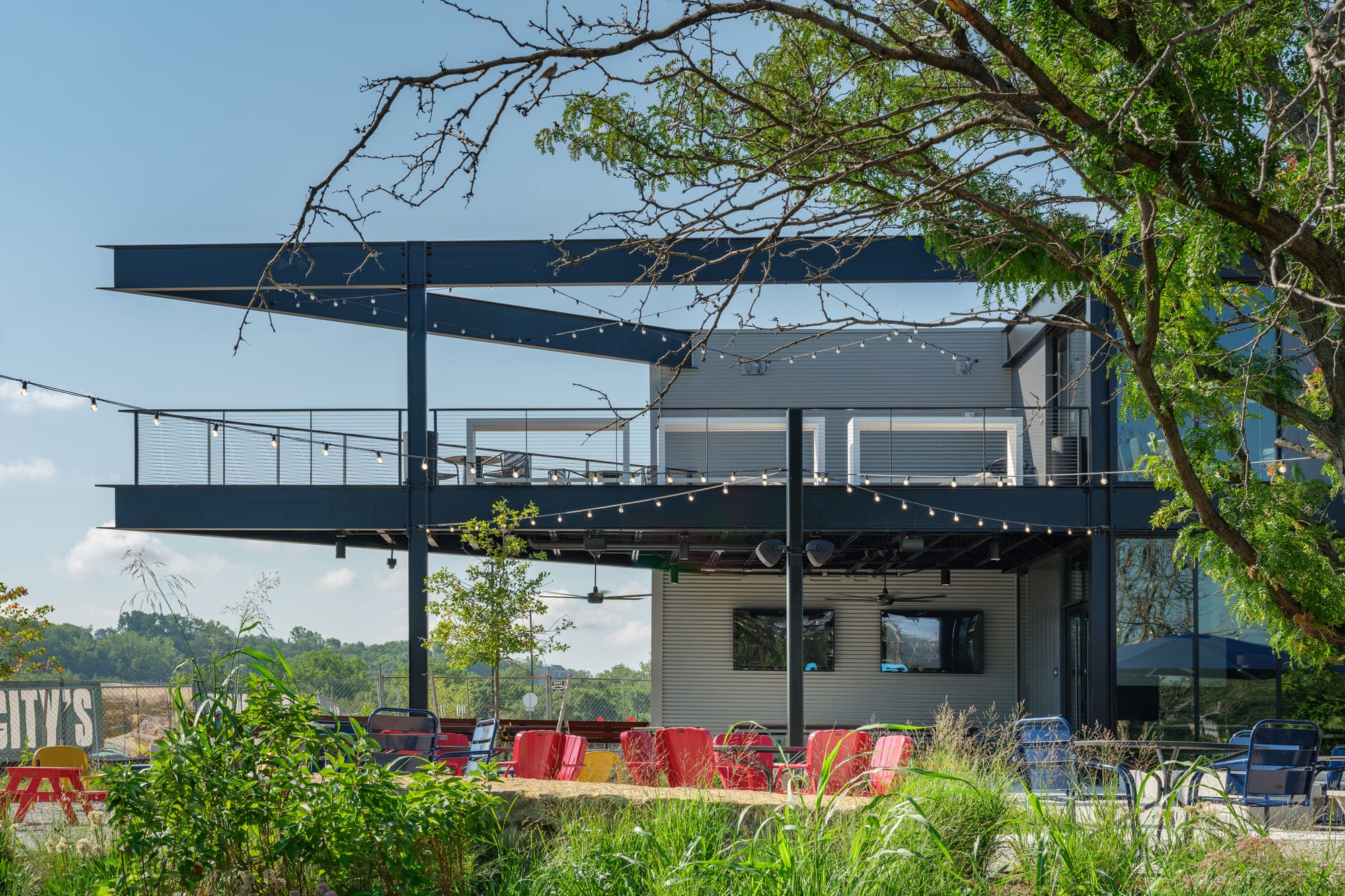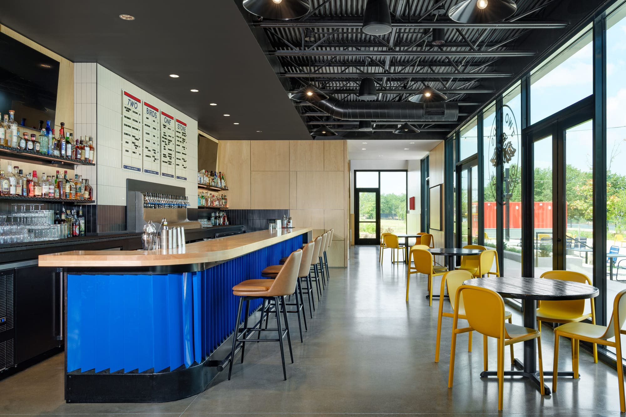 Two Birds One Stone is a dynamic food and beverage destination designed to activate Kansas City’s Berkley Riverfront Park through integration with its natural surroundings. Nestled within an existing grove of trees, the project emphasizes connection to the tree canopy, river, and adjacent park activity.