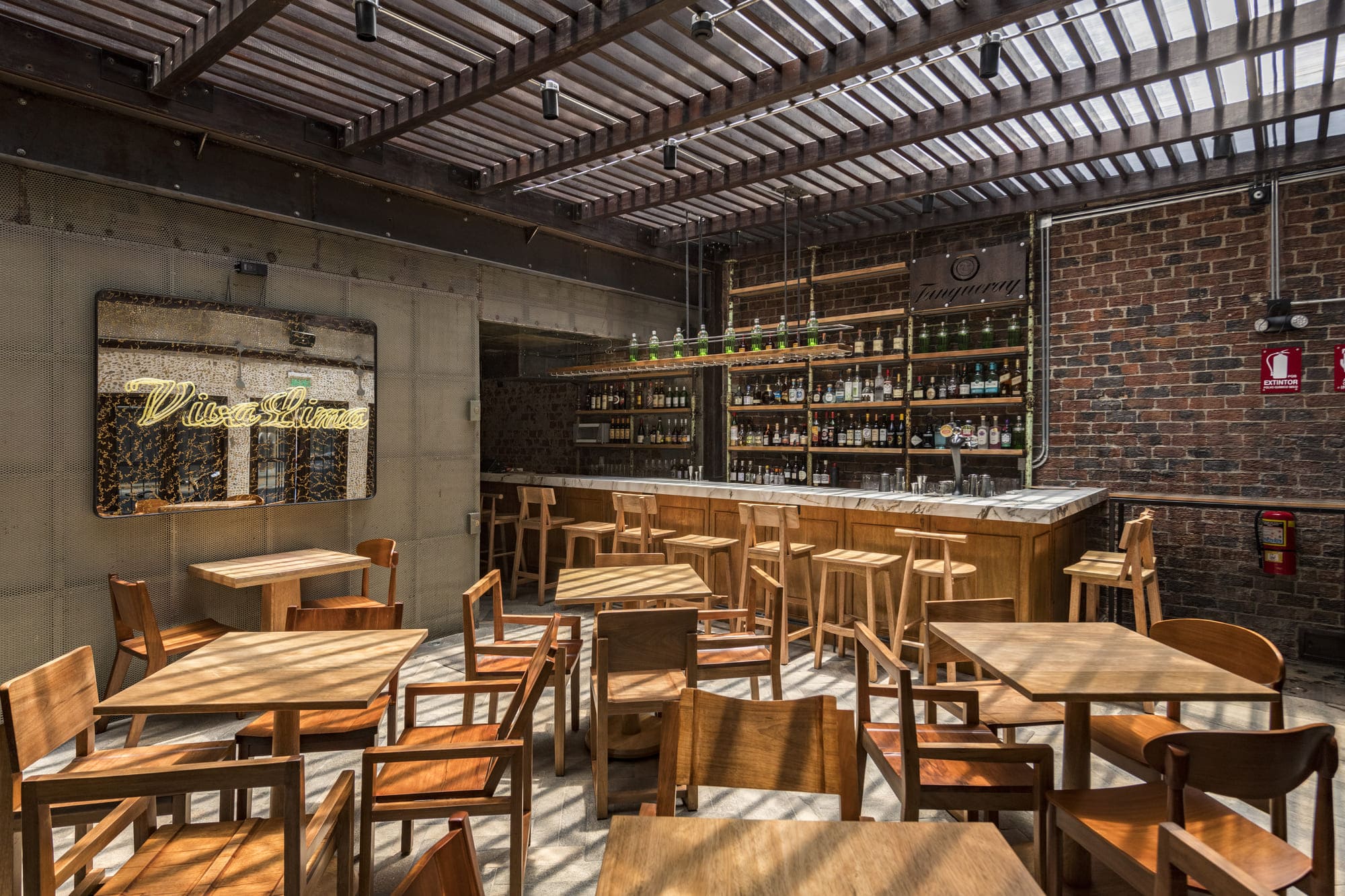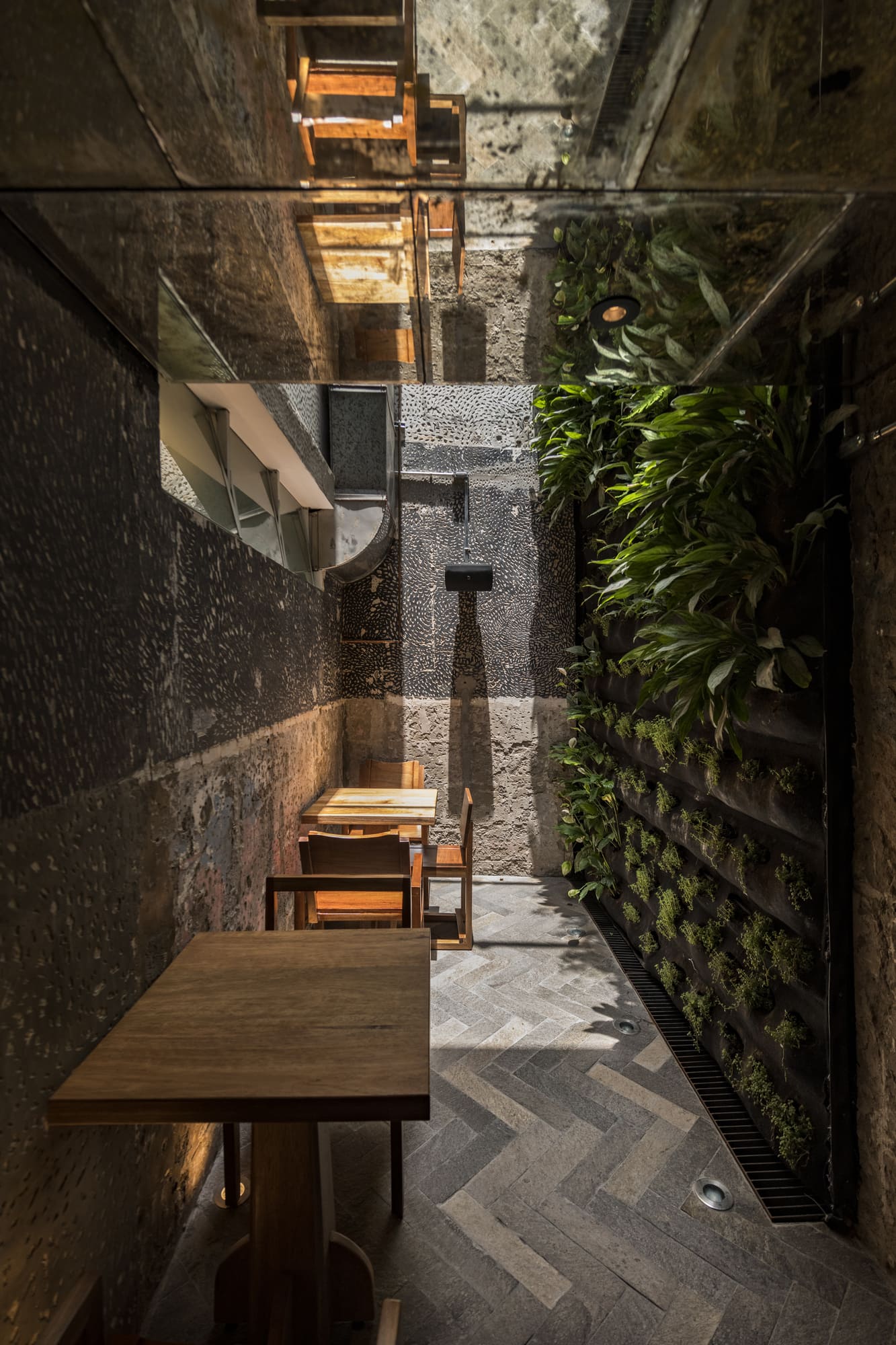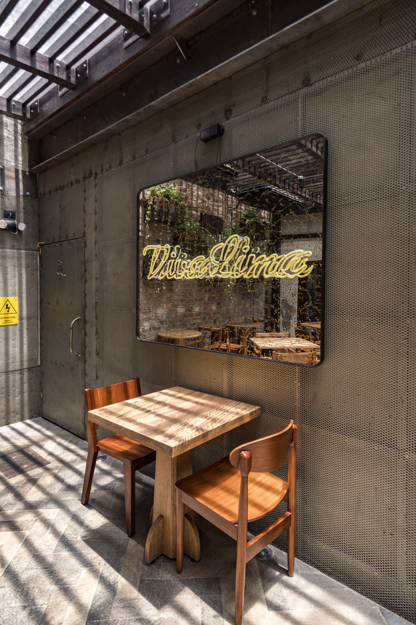 Inspired by the hallways of the ranch-style mansions of Barranco, the design explores the essence of those spaces of transit and meeting. The tile floors, wooden furniture and intentionally worn walls transmit the patina of time, becoming material witnesses of a Lima that resists in the collective memory.