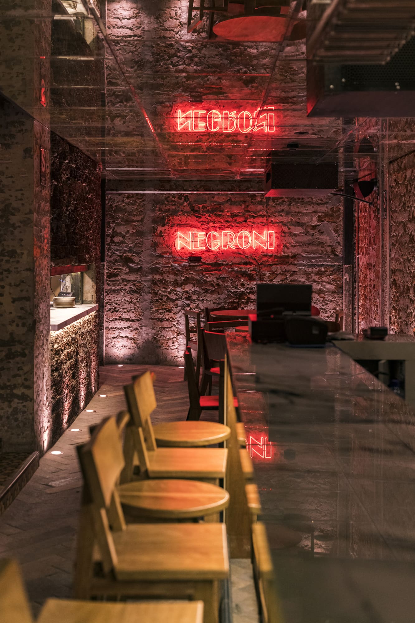 The dim and indirect lighting recreates the warmth of the dimly lit lanterns that once marked the pulse of Lima’s streets. In contrast, the neon flashes awaken the cosmopolitan pulse of today’s city, generating a vibrant dialogue between the nostalgic and the urban. The result is a unique atmosphere: a bar that not only evokes the history of the capital, but also celebrates the energy of contemporary Lima.